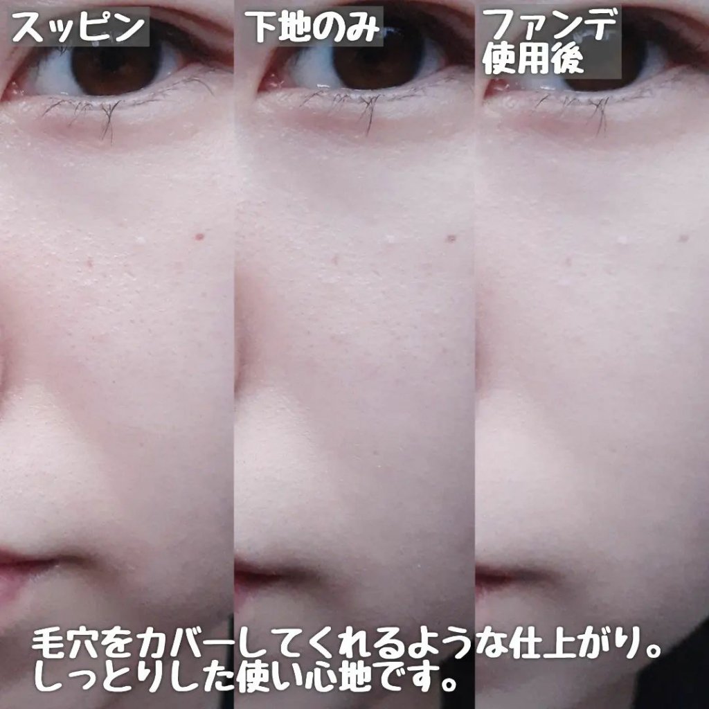 薄づきでナチュラルで付け心地も軽い感じ👍 だけど結構カバー力はあるかも✨ 毛穴も小さい毛穴なら目立たなくなってマシになる気がする! セミマットでちょうど良いツヤ感でテカテカし過ぎないのでそこも良い感じ👌