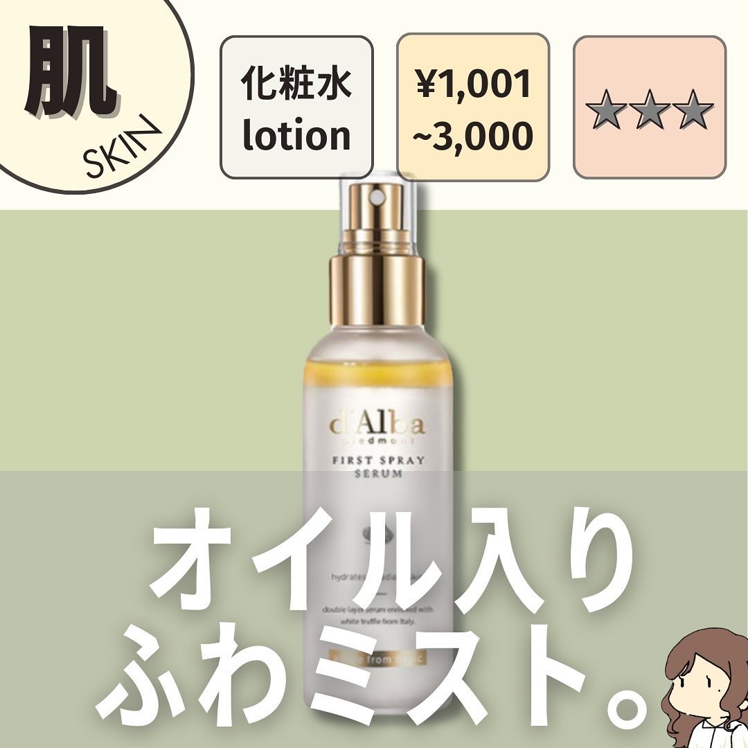 イタリア産の高級食材、白トリュフの整肌成分が配合されているスキンケアアイテムを展開するダルバ😊❤️ 全世界累計販売量4,200万本のホワイトトリュフファーストスプレーセラムは、大好きすぎて何本使ってきたか把握できていないほど。笑 韓国のオリーブヤングのミストセラムランキングでは1位を獲得し、アットコスメのミストカテゴリーランキングも1位になっています👑✨
