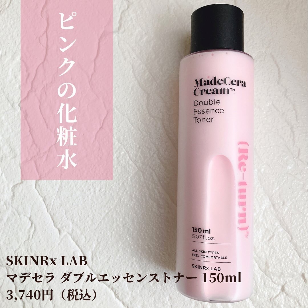 SKINRxLABマデセラダブルエッセンストナーを使ってみました!ツヤ感のある肌に仕上げてくれる保湿層としっとりとして活気のある肌に整えてくれる水分層で構成されたいちごミルク色の2層状トナーです。ツボクサから抽出したマデカソサイド配合の水分層...