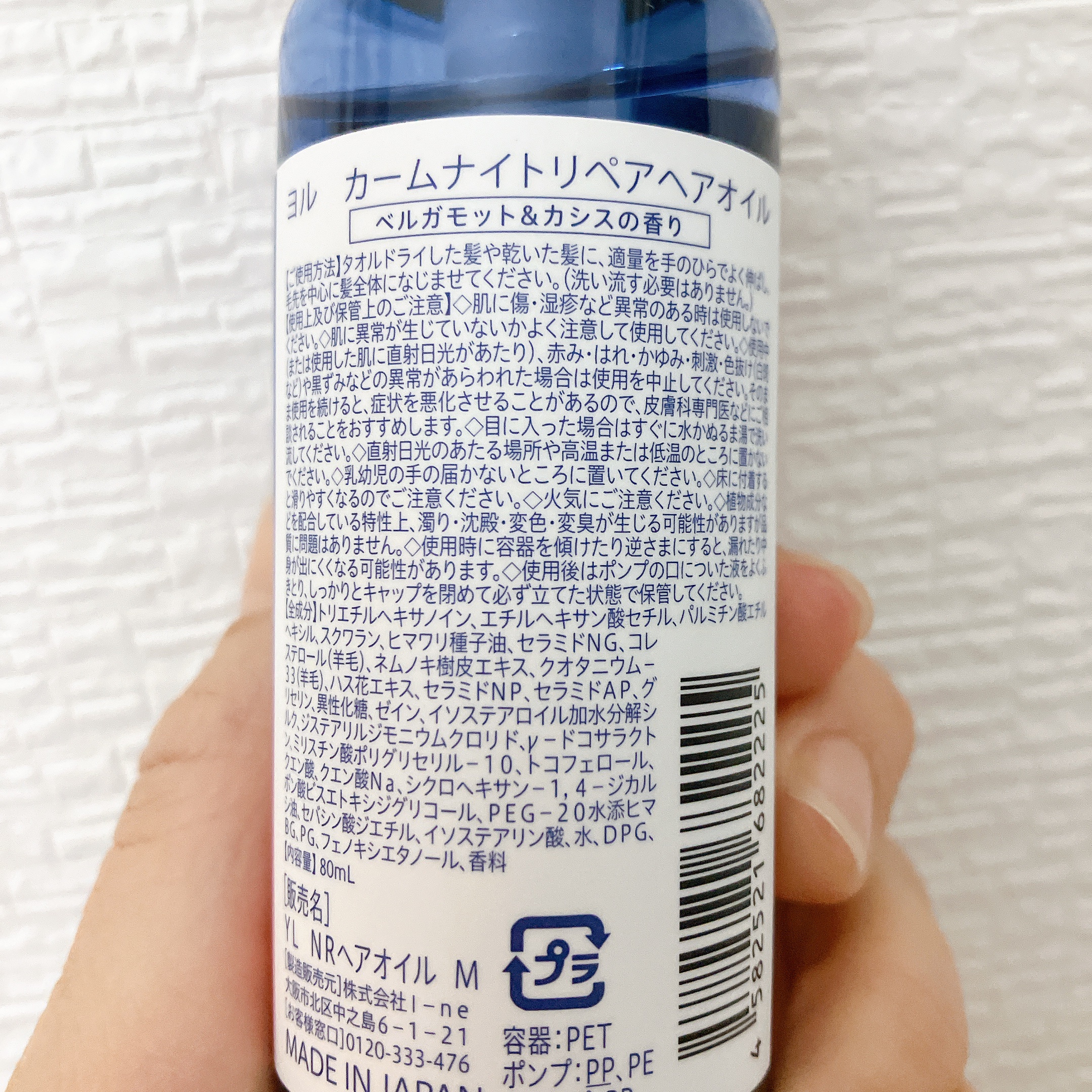- <80ml> トリエチルヘキサノイン、エチルヘキサン酸セチル、パルミチン酸エチルヘキシル、スクワラン、ヒマワリ種子油、セラミドNG、コレステロール(羊毛)、ネムノキ樹皮エキス、クオタニウム33(羊毛)、ハス花エキス、セラミドNP、セラミドAP、グリセリン、異性化糖、ゼイン、イソステアロイル加水分解シルク、ジステアリルジモニウムクロリド、γドコサラクトン、ミリスチン酸ポリグリセリル10、トコフェロール、クエン酸、クエン酸Na、シクロヘキサン1,4ジカルボン酸ビスエトキシジグリコール、PEG20水添ヒマシ油、セバシン酸ジエチル、イソステアリン酸、水、DPG、BG、PG、フェノキシエタノール、香料 <80ml(限定デザイン)> トリエチルヘキサノイン、エチルヘキサン酸セチル、パルミチン酸エチルヘキシル、スクワラン、ヒマワリ種子油、セラミドNG、コレステロール(羊毛)、ネムノキ樹皮エキス、クオタニウム33(羊毛)、ハス花エキス、セラミドNP、セラミドAP、グリセリン、異性化糖、ゼイン、イソステアロイル加水分解シルク、ジステアリルジモニウムクロリド、γドコサラクトン、ミリスチン酸ポリグリセリル10、トコフェロール、クエン酸、クエン酸Na、シクロヘキサン1,4ジカルボン酸ビスエトキシジグリコール、PEG20水添ヒマシ油、セバシン酸ジエチル、イソステアリン酸、水、DPG、BG、PG、フェノキシエタノール、香料