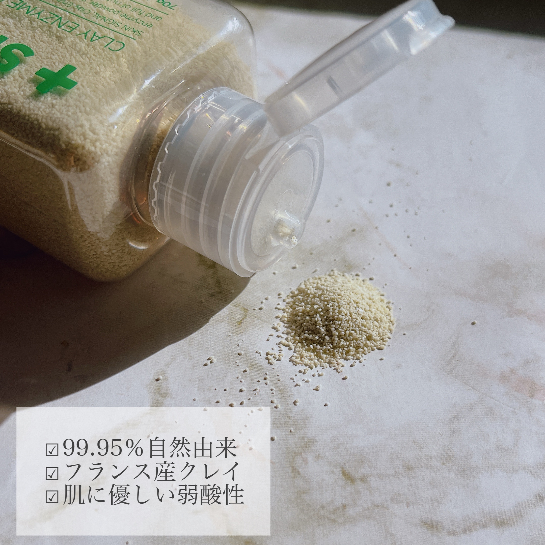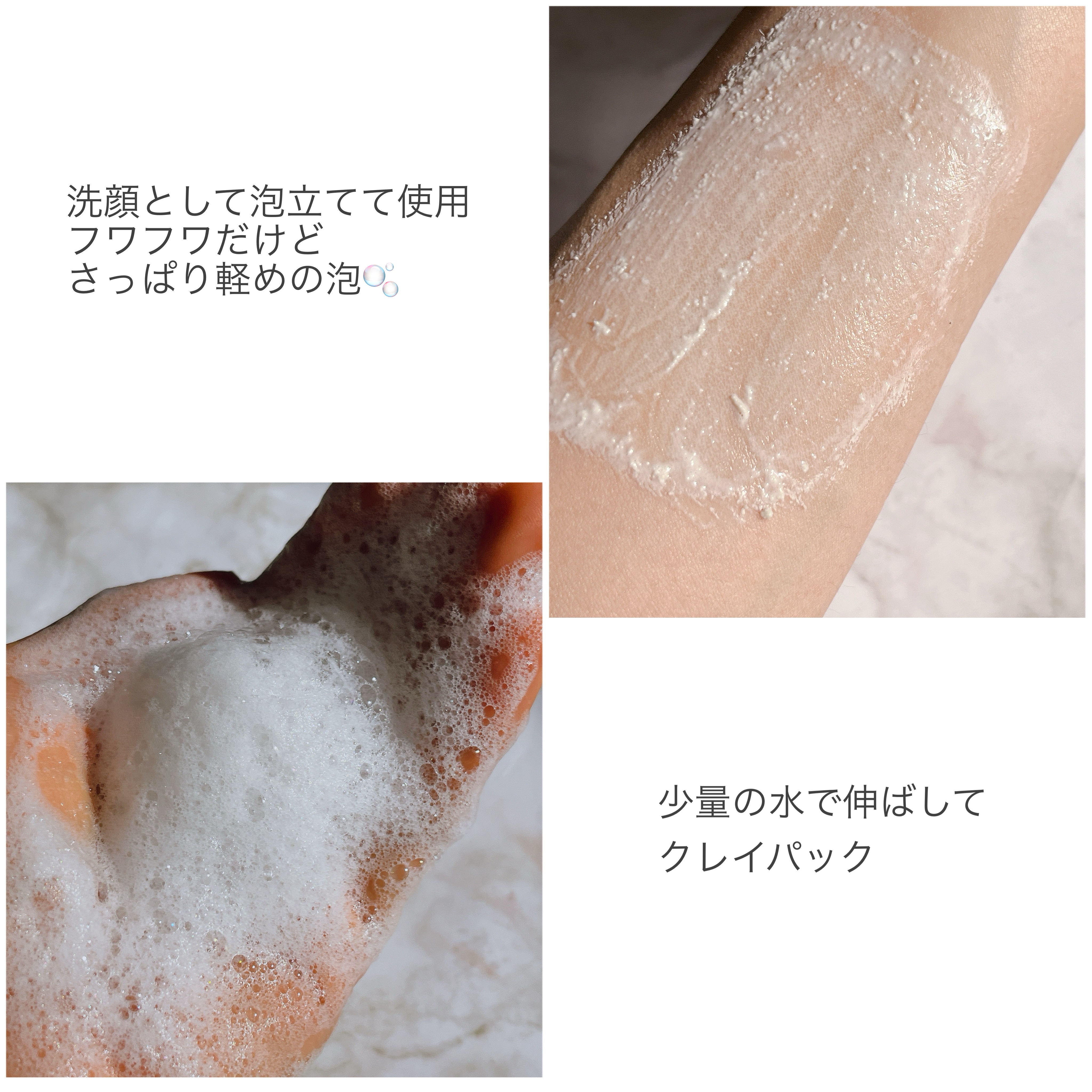 クレイが配合されていてお肌の汚れを吸着しながらすっきりオフしてくれます。 ピンクのクレンザーにはBHA(サリチル酸)が配合されていて毛穴の汚れやブラックヘッドのケアにぴったり。 水だけに溶かすと、酵素とクレイ成分でパック使いもできるので1本あると便利スキンケアでした!