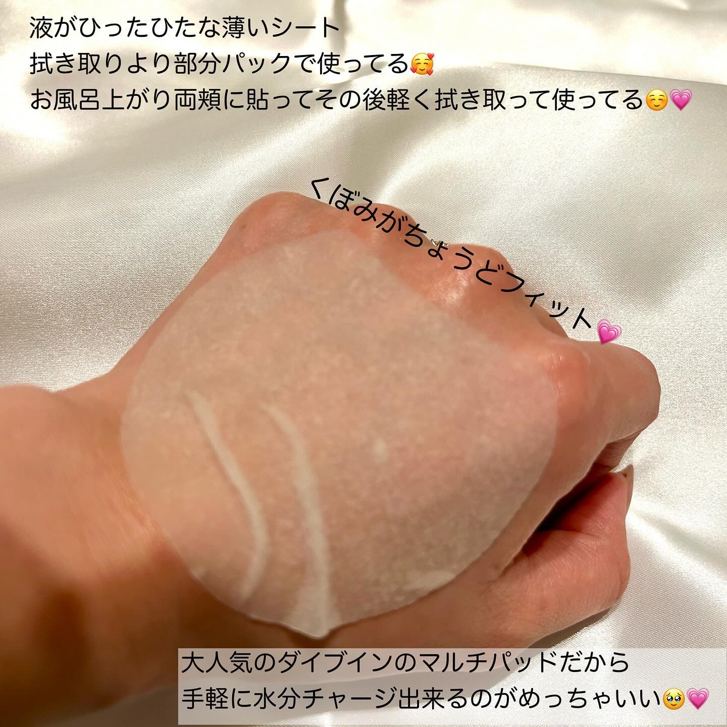 手軽に水分チャージ出来るのと、これ使い出してからやっぱり拭き取りって大切!!って思ったから🙆♀️ ダイブインの方は薄めのシートでくぼみがあってちょうど目元にフィットしてくれる🥹💗 あと薄めだから密着力すごい🙆♀️🙆♀️ これするだけでお肌の水分感が全然変わったの🥹 もう手放せません😂😂 シカトナーパッドの方は分厚めででこぼこ部分もあるよ🥰 ほんっとトナーパッドは便利だし重宝するね🥹💗