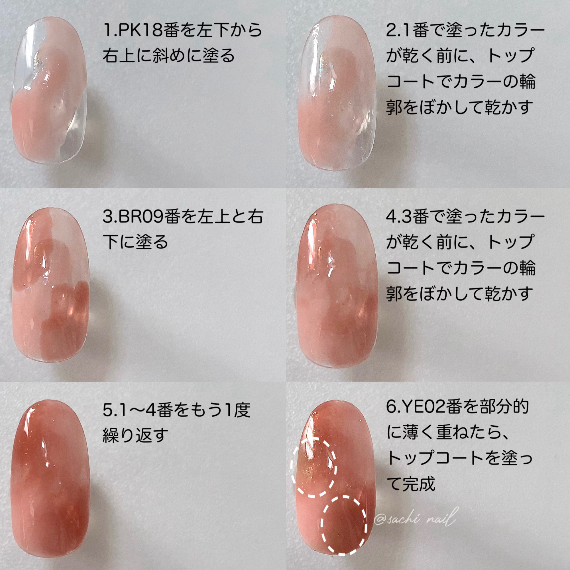 ワンカラーでも指ごとに色を変えるだけでオシャレに見えます💕 画像のようにゴールドラインとストーンを少し足すだけで華やかさがアップ🥰 何度かご紹介したことのあるスポンジで作るグラデーションです✨ スポンジを使うことで境目が綺麗に馴染んでくれます💕 アルミホイルの上でブラウンとトップコートを1:1くらいで混ぜたものを、トップコートのハケに取って3箇所に塗るだけ👌 事前に混ぜたものを塗ることで、爪の上でぼかすより簡単に出来ます💕 ベースカラーが乾く前に点置きしてぼかすことで綺麗にぼかせます✨ スピードが大事なので、使うポリッシュのキャップは全て開けておきましょう😊 天然石のラインはガタガタの方がより天然石っぽく見えるので、ラインを描くのが苦手な方でも大丈夫🙆♀️ 難しそうに見えて、やってみると意外と簡単に出来ます♡