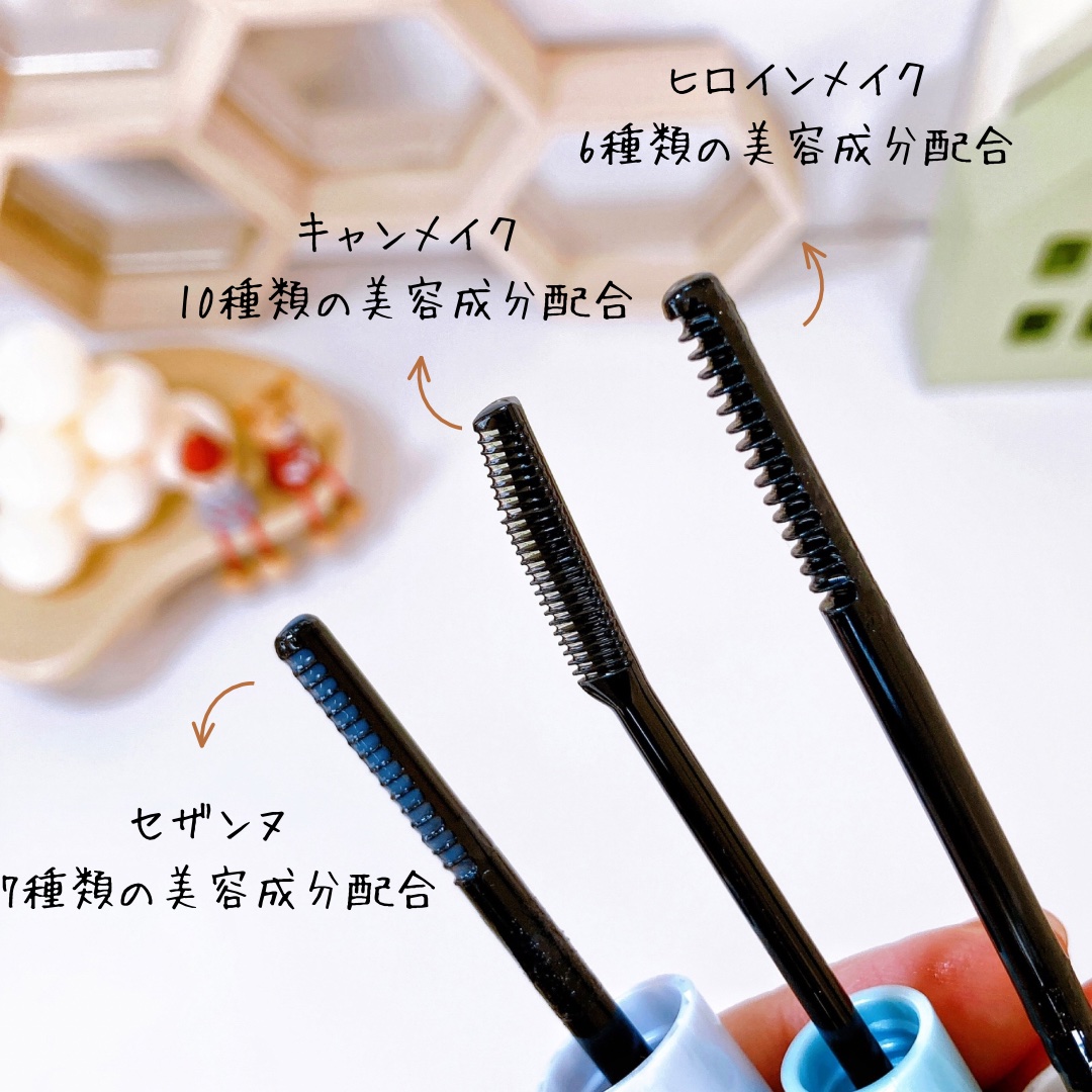 自まつ毛際建てタイプのブラシが塗りやすくて仕上がりも自然に盛れるから好き🫶✨ ロングタイプまつげが長く伸びて目が大きく見えるよ ボリュームタイプふわっと束感ある仕上がり