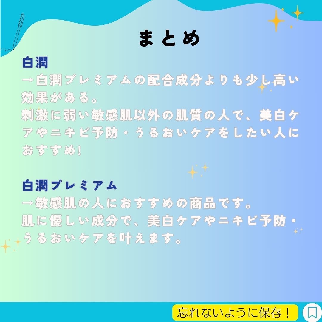 肌ラボ白潤プレミアムの通常タイプとしっとりタイプ使用してみました!さっぱりタイプは夏とかによさそうで、しっとりタイプは冬や乾燥肌の方におすすめ⭐️😀とても使いやすい化粧水と感じました!💕香りもないので使いやすいししっとり感も感じられました!美...
