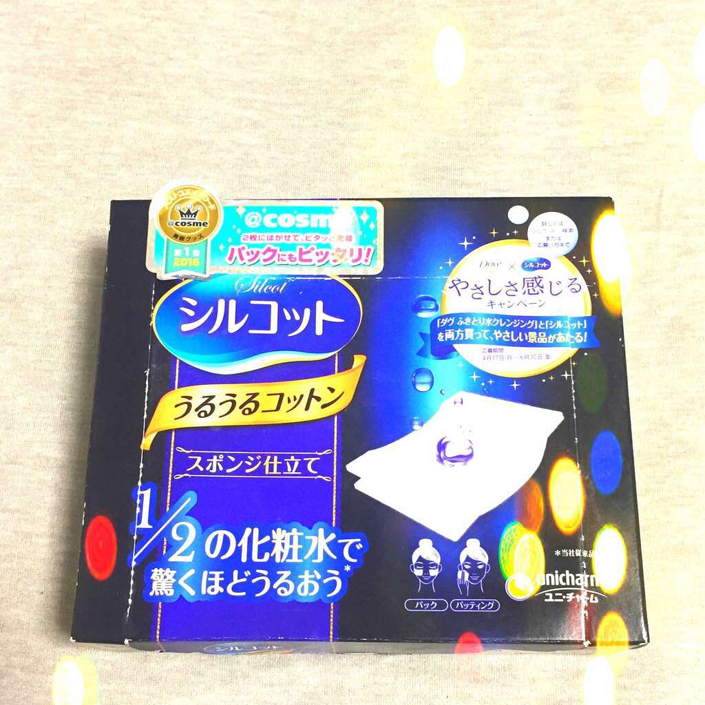 ■シルコットうるうるコットン80枚入り(160シート)あんまり好きじゃない化粧水をコットンパックで消費するために購入!スポンジ素材の薄手のコットン。二つ折りの状態が1枚で、開くと真ん中の切り取り線からカットできます。3〜4枚分で全顔をパックで...