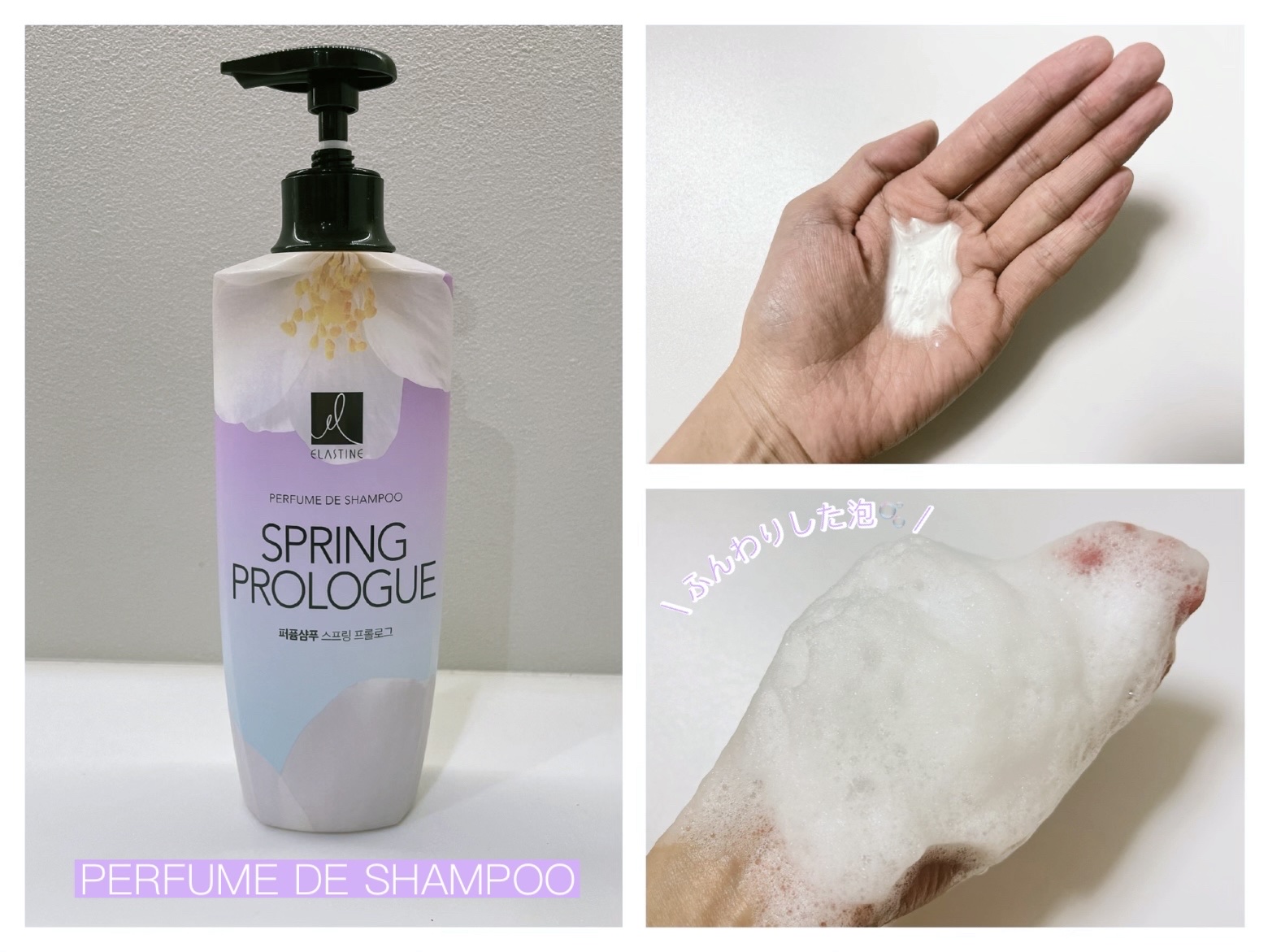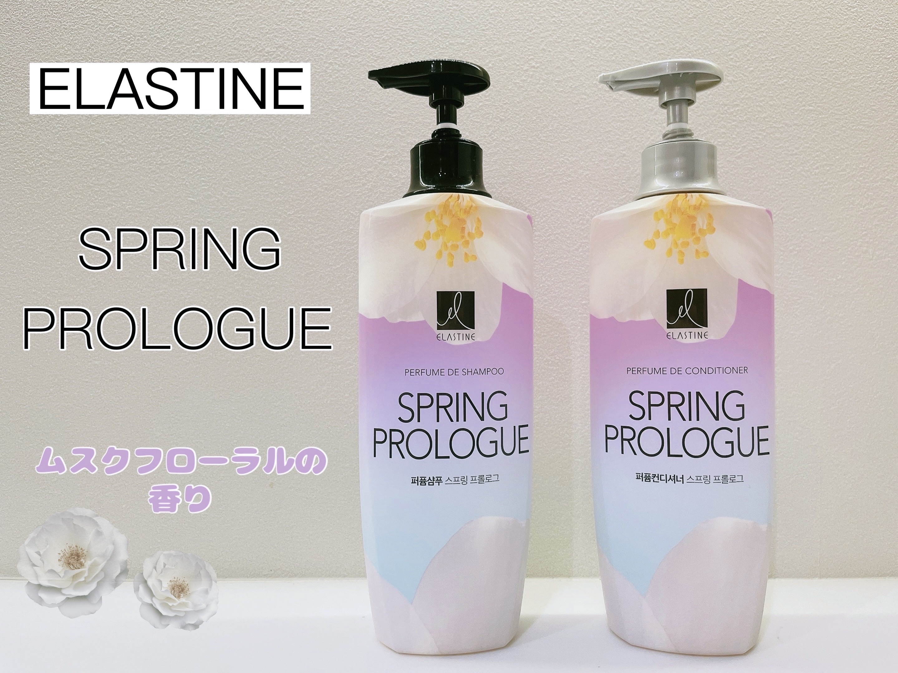 ELASTINEパヒュームシャンプー&コンディショナー→ 香りは「ラブミー」・「ピュアブリーズ」・「スプリングプロローグ」の3種類あり、今回は、優しくふんわりとしたムスクフローラルの香りである「スプリングプロローグ」を使用しました!→【NEW...