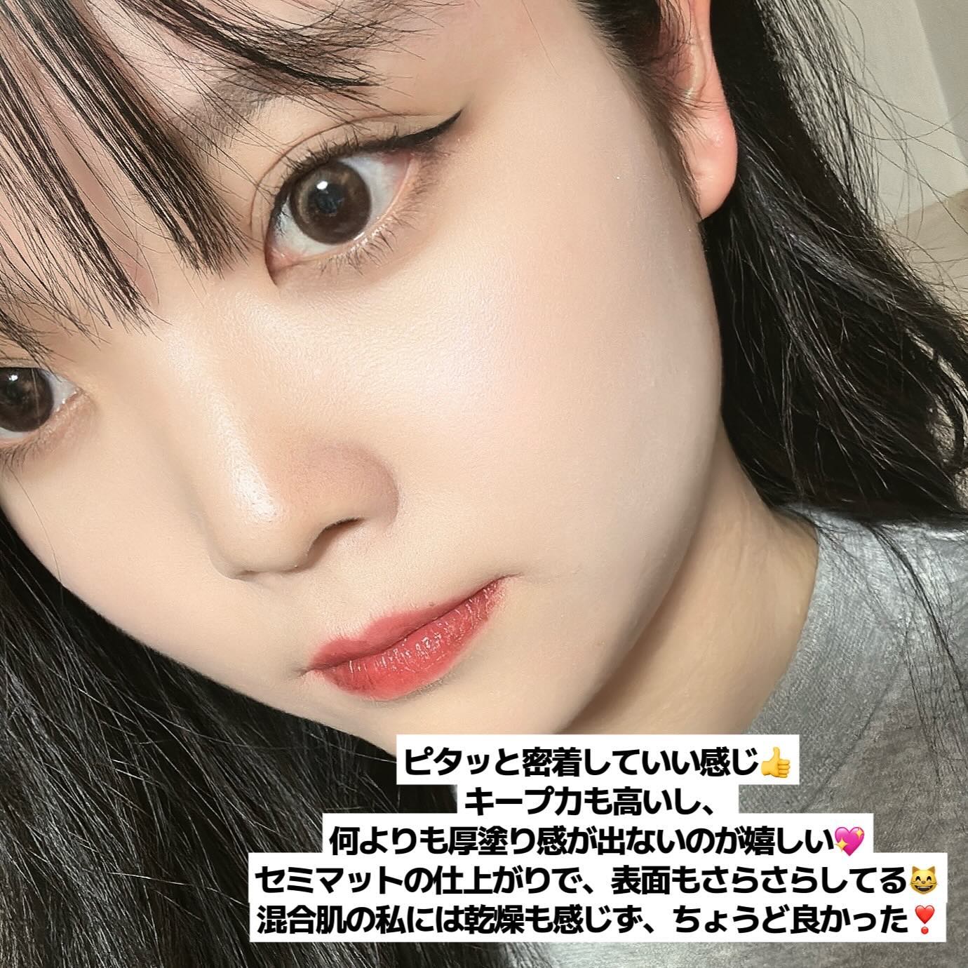 話題になっている通り、とにかく色持ちが良かった🫰🏻逆に落としにくいくらい、色が唇に定着する...🫧色素沈着には少し注意した方が良さそうなくらい...💭 単体で使っても可愛いし、上からグロスを重ねても可愛い😍 色持ちの良いティントをお探しの方、色々なカラーを楽しみたい方におすすめ☺︎