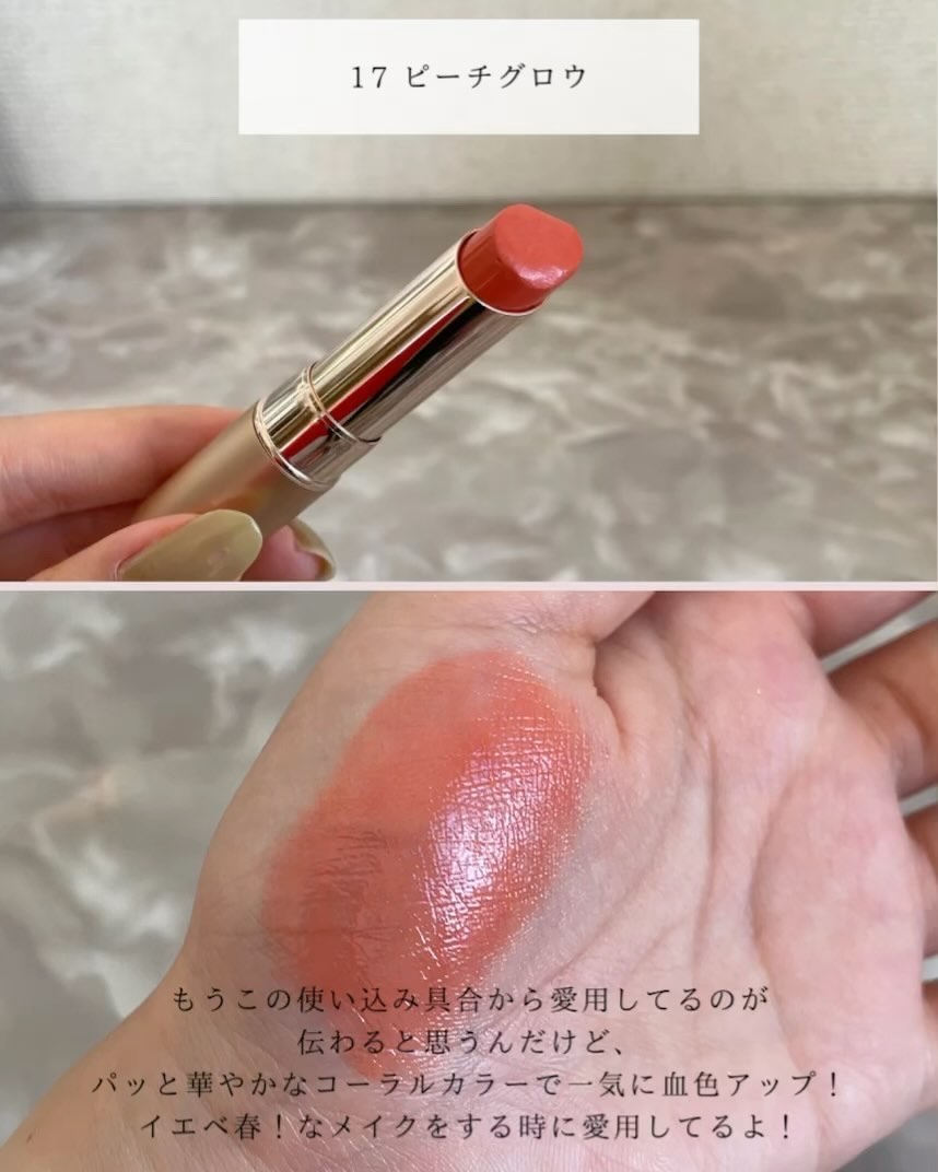 日本限定の新色が2本でたんだけど 34 bare tangerineが オレンジに白みを足したような 柔らかいカラーで可愛すぎた♡ 一度塗りだとオレンジベージュ系で しっかり重ねるとオレンジ感が増して これまた可愛いの! イエベ春向けのプチプラ韓国コスメを 紹介しています🍑