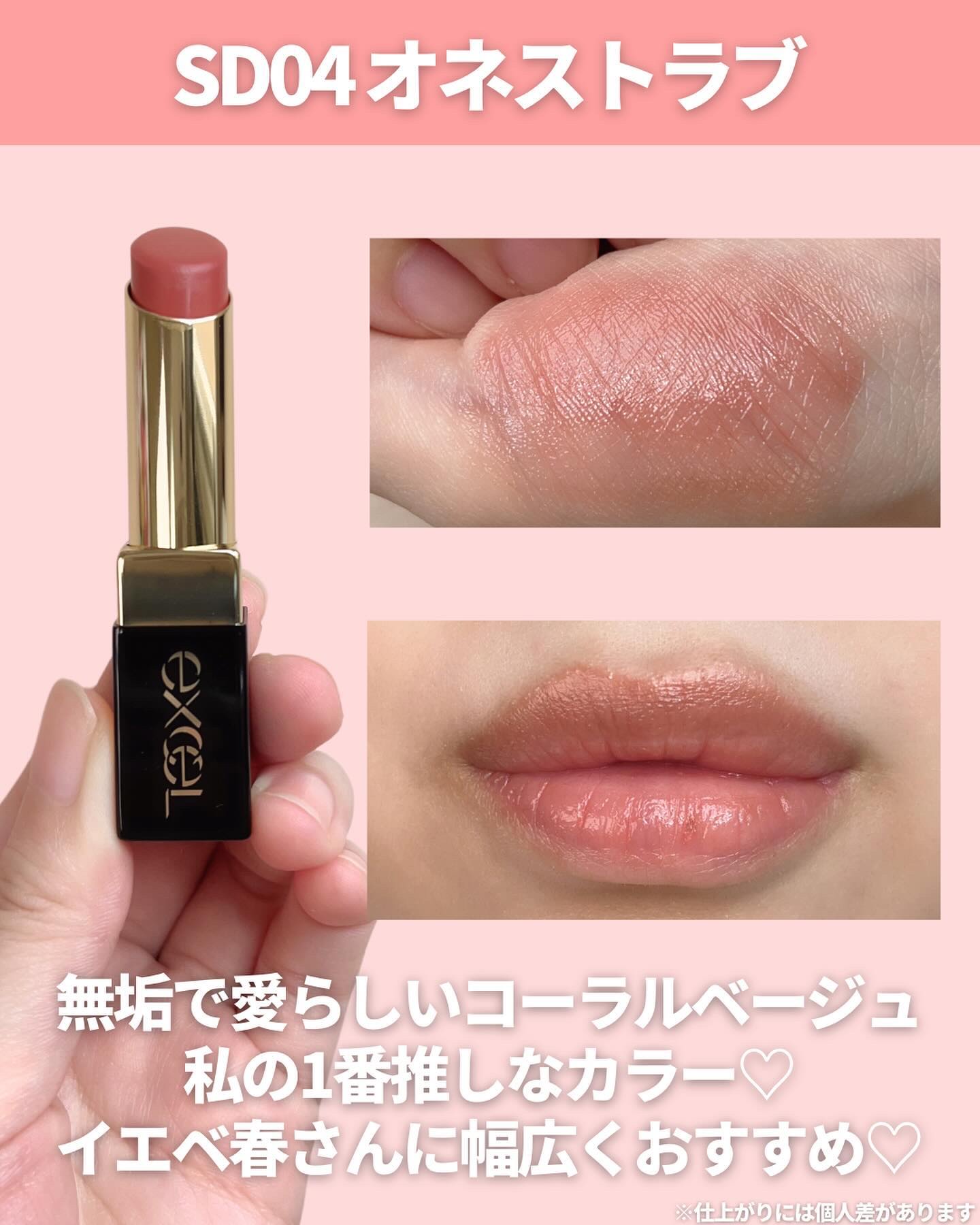 - 永遠に変わらない魅力を秘めたベージュだけを厳選した、極上ニュアンスカラーの美容液リップです。 とろけるようなテクスチャー、絶妙な色味、プランプ効果*1のすべてを叶える絶妙なバランスを追求し、発売まで2年を要したこだわりのアイテムです。 どんなシチュエーションにも合わせられ、素の唇の美しさを引き立てる極上ベージュカラー。 どなたでも似合う“運命の1本”が見つかるニュアンスカラーラインアップです。 程よいシアーな発色で唇の血色感も残しつつ、ベージュの中に赤みを数滴混ぜたような絶妙カラーだけを厳選しました。 プランプ効果*1でふっくら艶めく唇を演出し、ひと塗りで気になる乾燥を予防し唇の縦じわをカバーします*1。 唇の上にとろけるようなオイル膜を形成し、ぴたっと密着してヨレを防ぎます。 美容液97%*2のトリートメント感覚リップです。 *1 メイクアップ効果による *2 仕上がり効果粉末を除く成分 4月9日よりエクセル公式オンラインショップ及び amazon にて先行販売