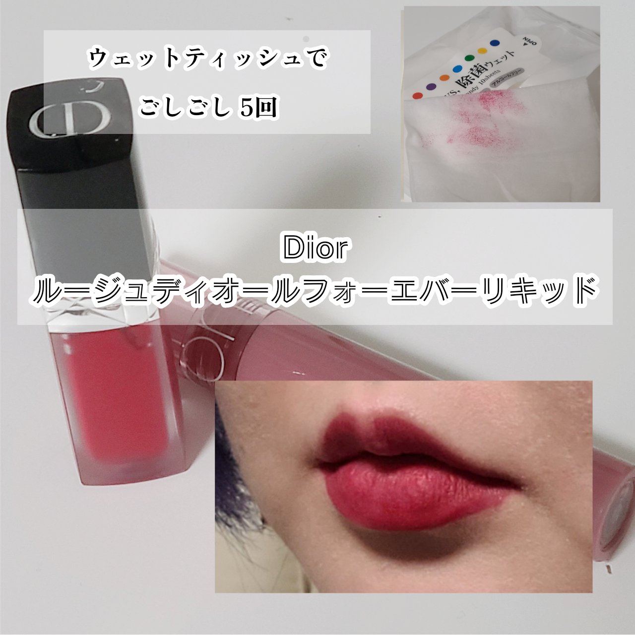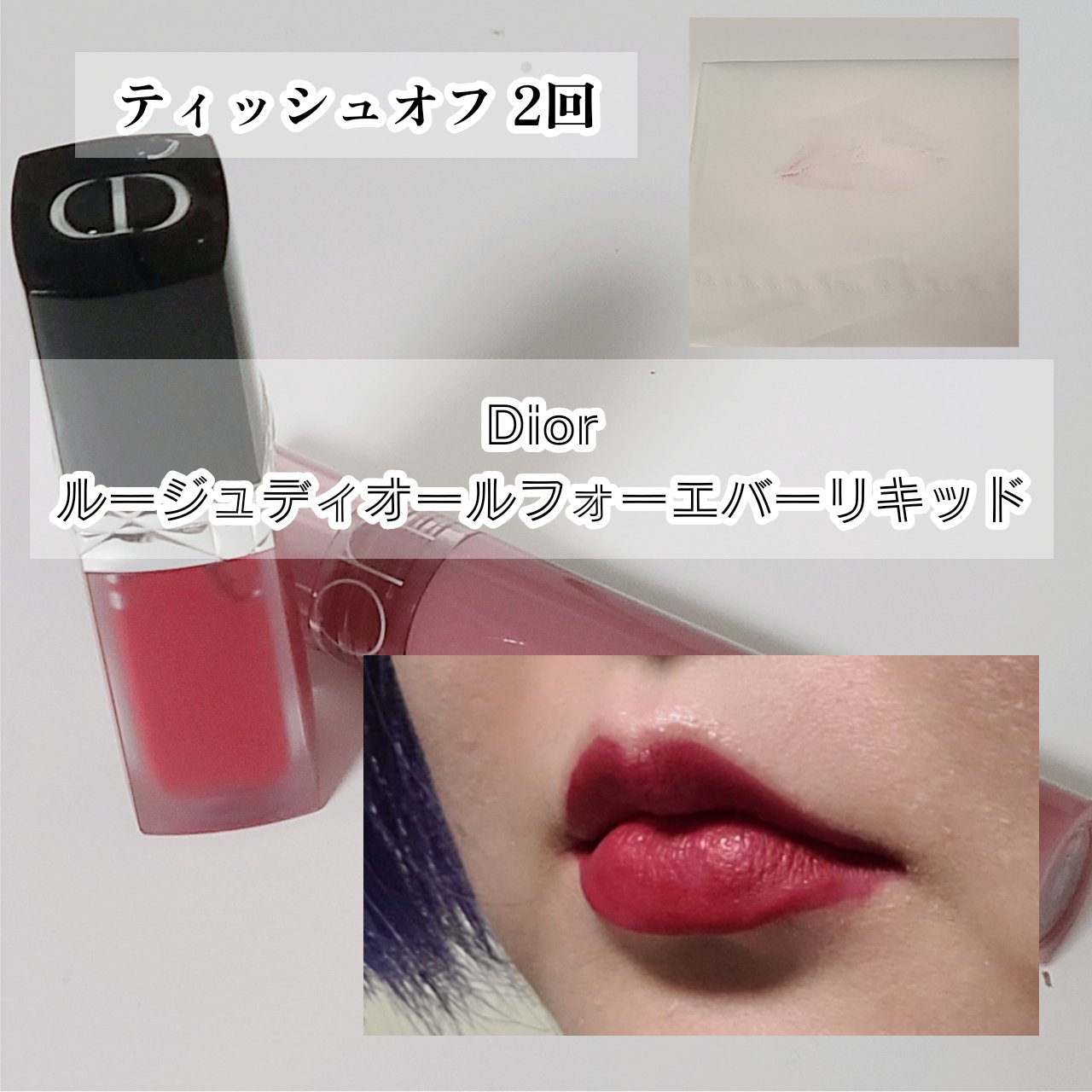 rom&ndはティッシュオフ2回で完全に落ちるリップ。食べ飲みしたらいっそ全部塗り直す! 派のあなたへ。 Diorはマスクプルーフの名の通り、ティッシュオフでもウェットティッシュでも、なんなら拭き取り式メイク落としでも落ちません笑 油物でないなら食べても飲んでも塗り直し必要なし。カップにもつかない優秀リップです✨ コツは塗ってから2分待つこと!