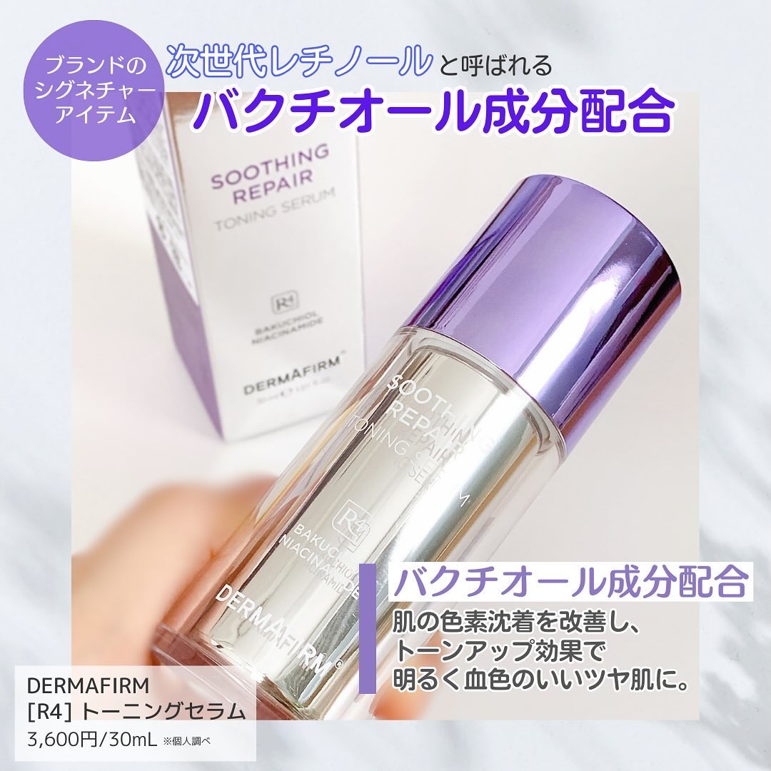 ⋱PR⋰DERMAFIRM(@dermafirm_jp)⸜NO色素沈着セラム⸝SOOTHINGREPAIRTONINGSERUM30mlくすみ×弾力×毛穴が気になる肌をハリのある印象に導くマルチ美容液*.+゜次世代レチノールといわれるバクチオ...