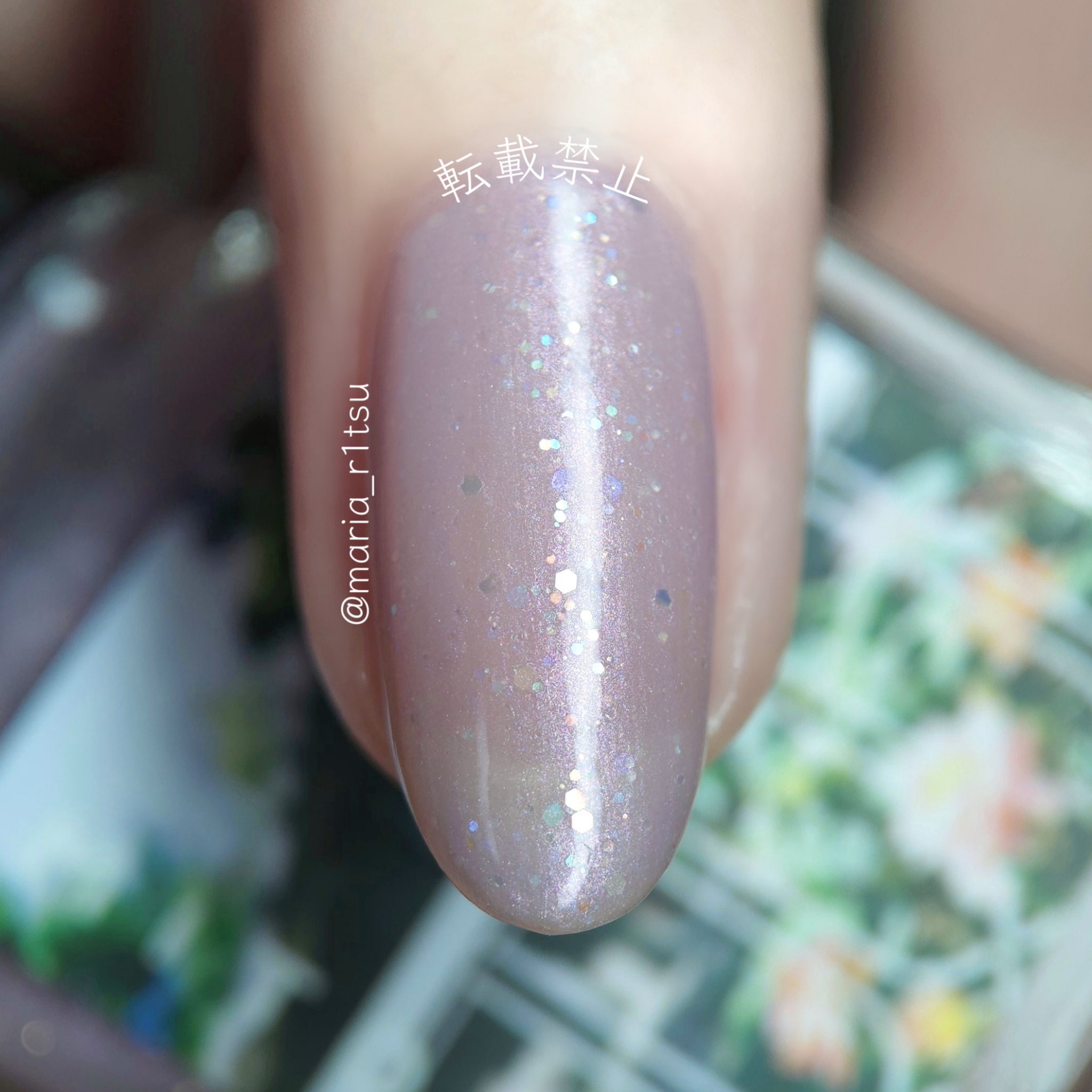 こちらは春コレの第1弾で、シアーなベースカラーにラメが美しいネイルポリッシュです。 細筆なのですが程よいコシがあるので、ボトル縁で扱いて広げると綺麗に塗れます。 シアーホワイトにライトグリーンのラメがたっぷり入っていてとても美しいです。 シアーなピンクブラウンに青ラメがチラチラして綺麗な色です。 発色がシアーだからか、重たくならず上品に仕上がります。 澄んだダークブラウンに多色ラメが時折きらりと光ります。 ほんのりと華やかさを添える多色ラメと、シアーな色味のおかげでダークブラウンでも重たくなりすぎません。