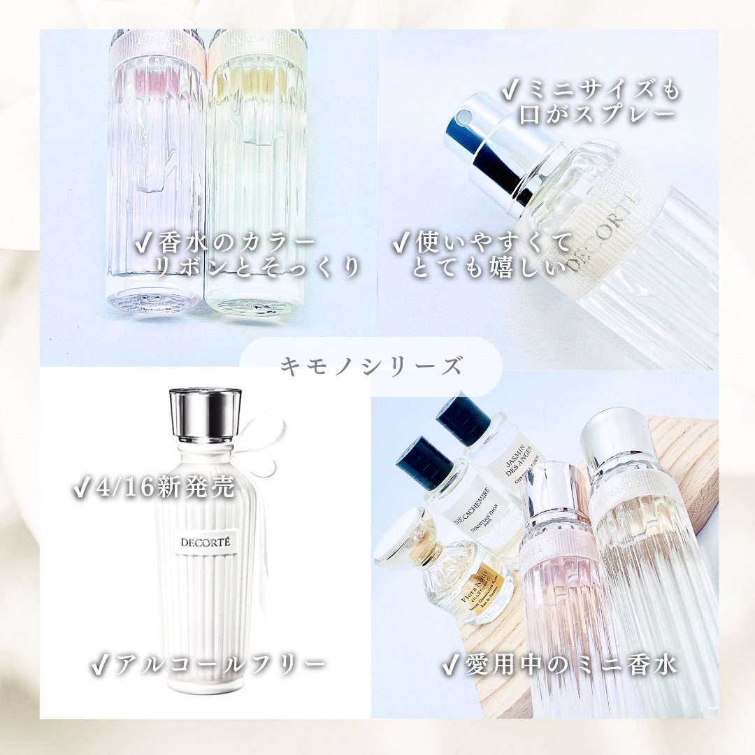 DECORTÉキモノ ヒカリ ウォーターコロン*:.。⭐︎キモノ マイ ウォーターコロン*:.。⭐︎price:¥9,350(税込)アルコールフリーの水性香水🫧アルコールフリーなので肌に優しく、ふわっと香ります🩵柔らかい香りなので場所を選ばず...