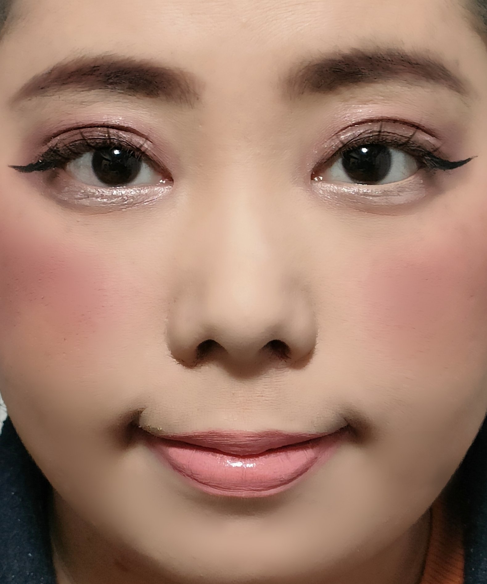 アリィー ニュアンスチェンジUV ジェル RSを、顔全体にまんべんなく塗ります。 RMK RMK ジェルクリーミィファンデーション 103を、顔全体にまんべんなく塗ります。 ジョンソンベビー ジョンソン ベビーパウダーを、顔全体にまんべんなく軽くはたきます。 THE BODY SHOP bronze shade warm glowを、両頬に塗ります。 KATE リフレクトミラーアイズ BR-1の締め色を、眉毛全体にまんべんなく塗ります。 URGLAM UR GLAMBLOOMING EYE COLOR PALETTE 01を、使用しました。 ちふれ リキッド アイライナー 筆ペンタイプ BK30 ブラックを、塗ります。 CEZANNE エアリーカールマスカラを、まつ毛全体にまんべんなく塗ります。 MAYBELLINE NEW YORK コロッサルボリュームエクスプレスを、まつ毛全体にまんべんなく塗ります。 MAYBELLINE NEW YORK SPステイ マットインク 135を、唇全体にまんべんなく塗ります。