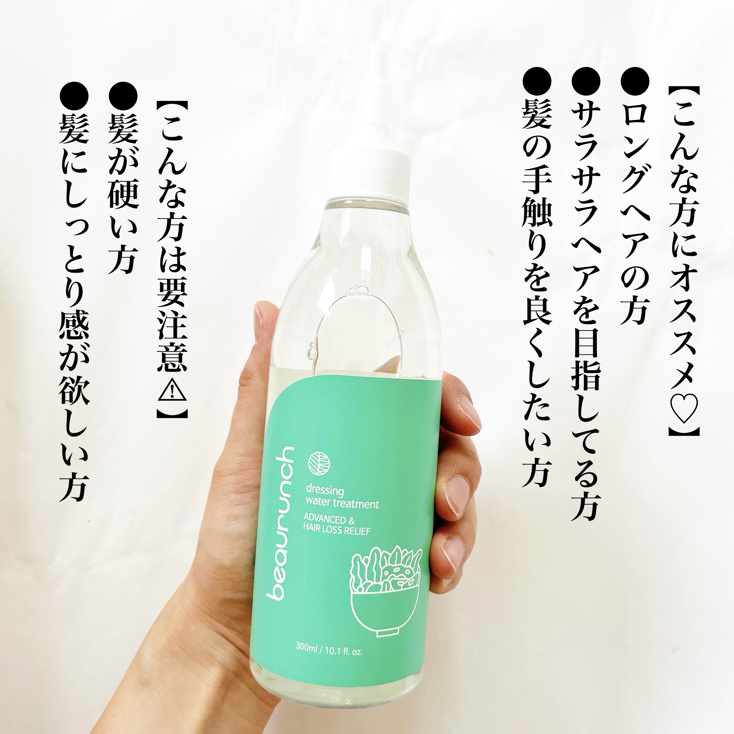 テクスチャーはちょっと重めのトリートメントという印象で少しねっとり感があるようなイメージ。 洗い流してみるとしっとり感は残るもののベタついたり、猫っ毛にも重くないようなテクスチャーの割に軽い仕上がり。 そしてお風呂上がりにタオルドライしてその後ドライヤーで乾かしていくと髪がめっっちゃくちゃサラッサラになってびっくり&感動でした! 手触りはサラッとしているのに髪の毛先1本1本はしっかりまとまっていて本当に美容院でトリートメントしたような仕上がり。 このトリートメント、酸熱トリートメントの成分が配合されているそう。 本当にそれに近い髪がストンとまとまるような仕上がりです。 1日使うと次の日はもちろん2〜3日は効果を感じ続けられるので週に1〜2回の使用で十分だと思います。 これは今後も使いたい!知り合いにもめちゃくちゃオススメしたいヘアトリートメントだと感じています。 髪のダメージや、広がり、パサつきなどが気になっている方は一度使ってみてほしいアイテム!