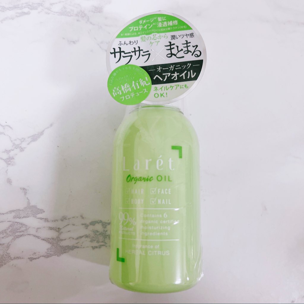 オーガニックヘアオイル。タオルドライ後やヘアスタイルの際に使います。使ってみると髪がサラッとして指通りがよくなりました。 オイルだけどサラッとしたテクスチャーでベタつかない所がいいなと思いました。香りはハーバルシトラスの香り。 ヘアケアと一緒に全身のケアもしたい方や、オイルのベタつきが苦手な方におすすめ🫶
