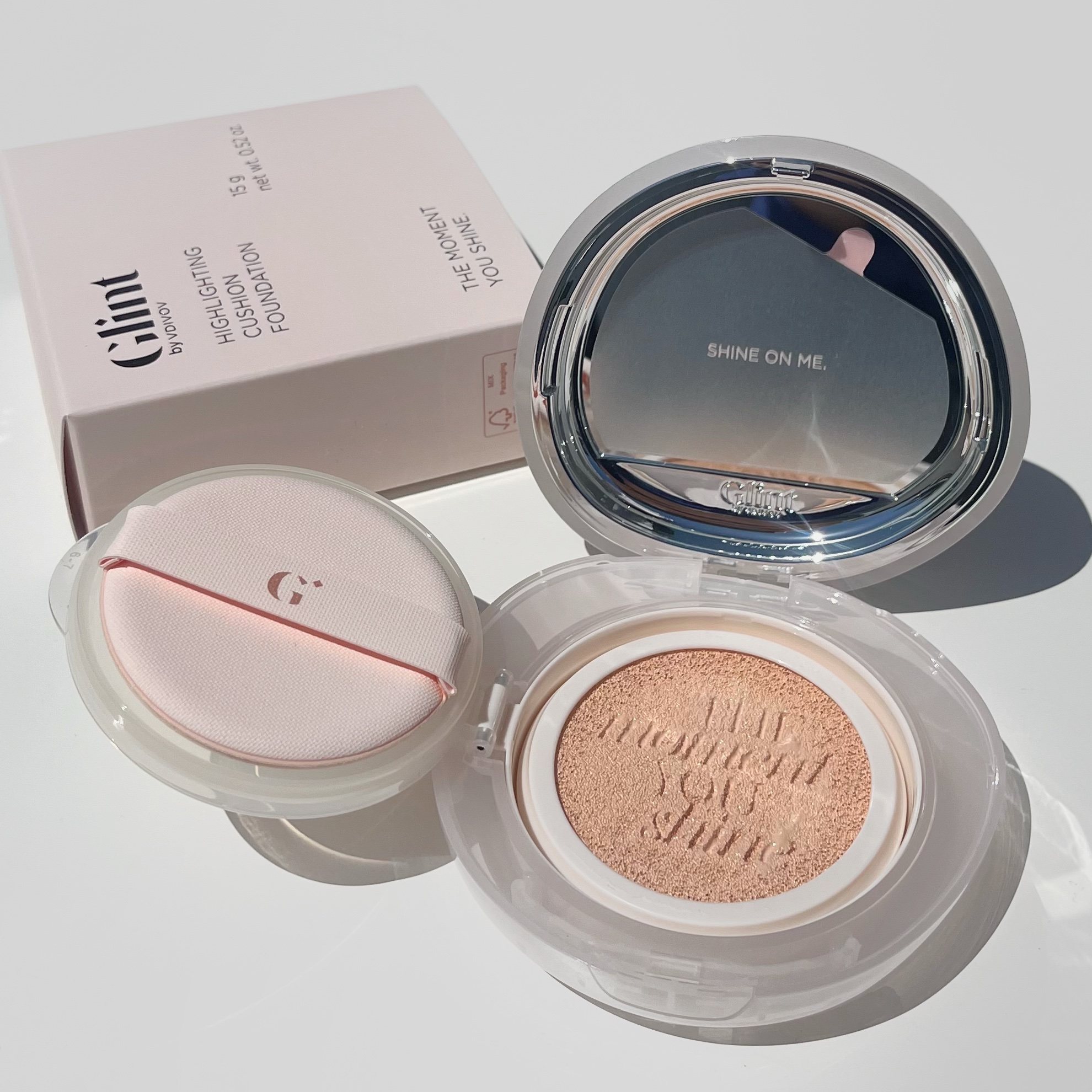 Glintベストセラーであるハイライターの粒子を配合し お肌のトーン・キメ・ツヤを演出してくれるクッションファンデ✨ 水分キープ力とエッセンス62%配合でスキンケア並の成分‼︎ 華やかなうるツヤ肌を演出してくれるのが嬉しい‼︎