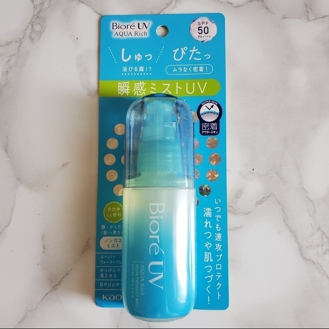 少し前にKaoさまの、Kaoコレモ!のキャンペーンでいただきました。ビオレビオレUVアクアリッチアクアプロテクトミスト顔、からだ、髪に使えます。霧のような細かいミストでした。体に使う場合は10~15cm離してまんべんなくかけます。顔に使う場合...