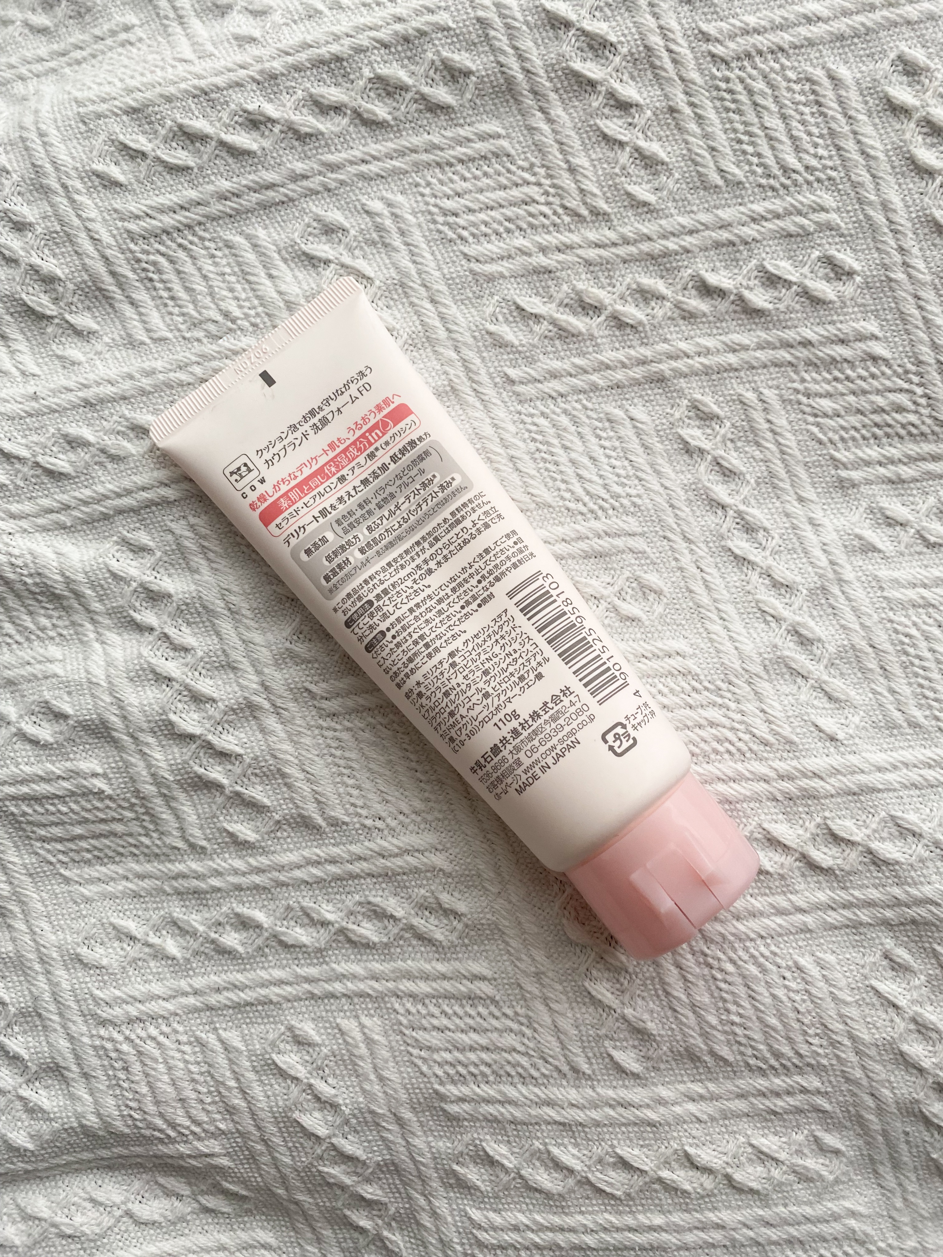 - <110g> 水、ミリスチン酸K、グリセリン、ステアリン酸、ミリスチン酸、ココイルメチルタウリンK、ラウラミドプロピルアミンオキシド、ヒアルロン酸Na、セラミドNG、グリシン、ジラウロイルグルタミン酸リシンNa、ジステアリン酸グリコール、ラウリルベタイン、コカミドMEA、ベヘン酸、ヒドロキシステアリン酸、(アクリレーツ/アクリル酸アルキル(C10-30))クロスポリマー、クエン酸