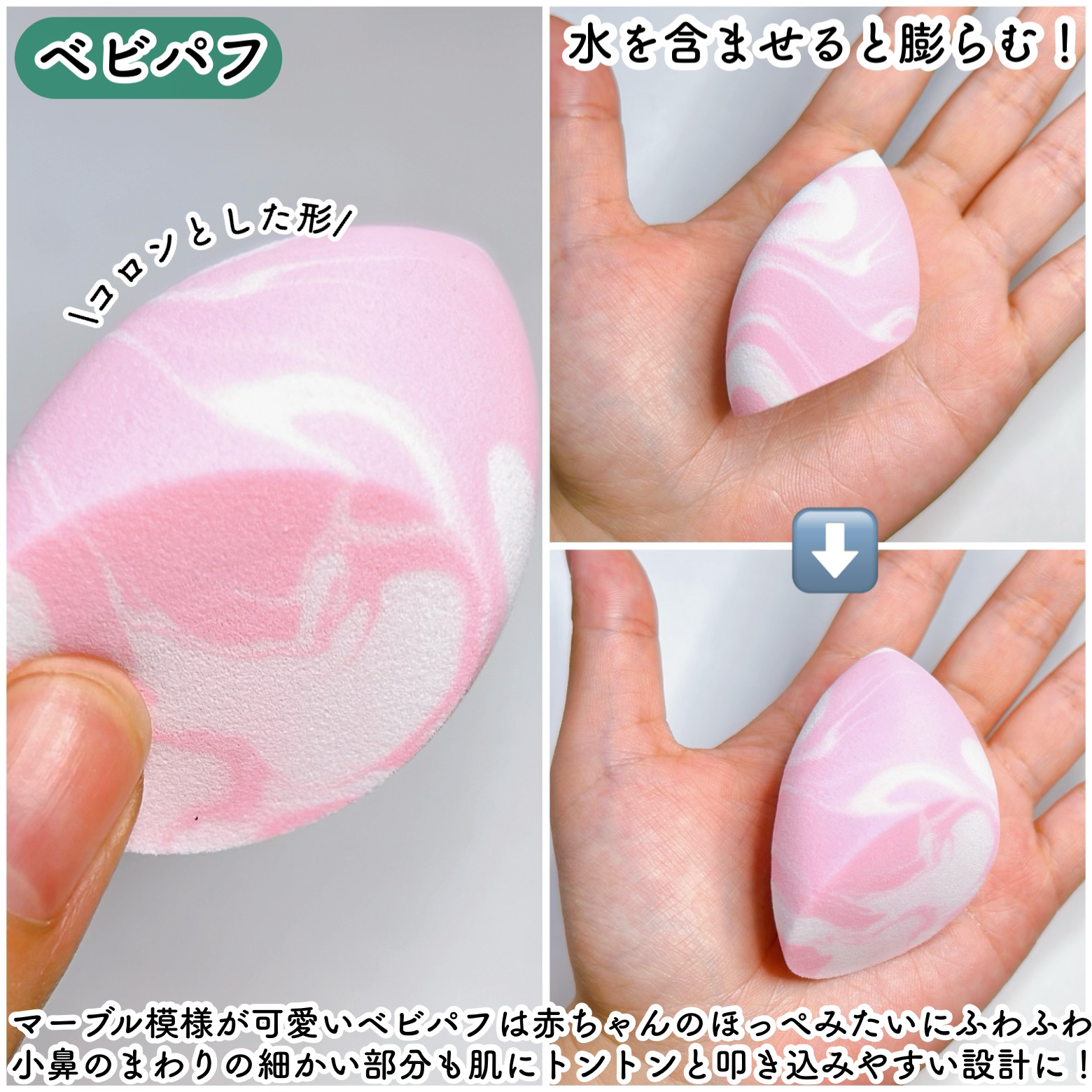| 美容グッズ・美容家電ランキング第157位 | 水を含ませるとふくらむタイプ。モチモチしていて弾力あり♡見た目もパステルカラーでとても可愛い! | 詳細を見る | |