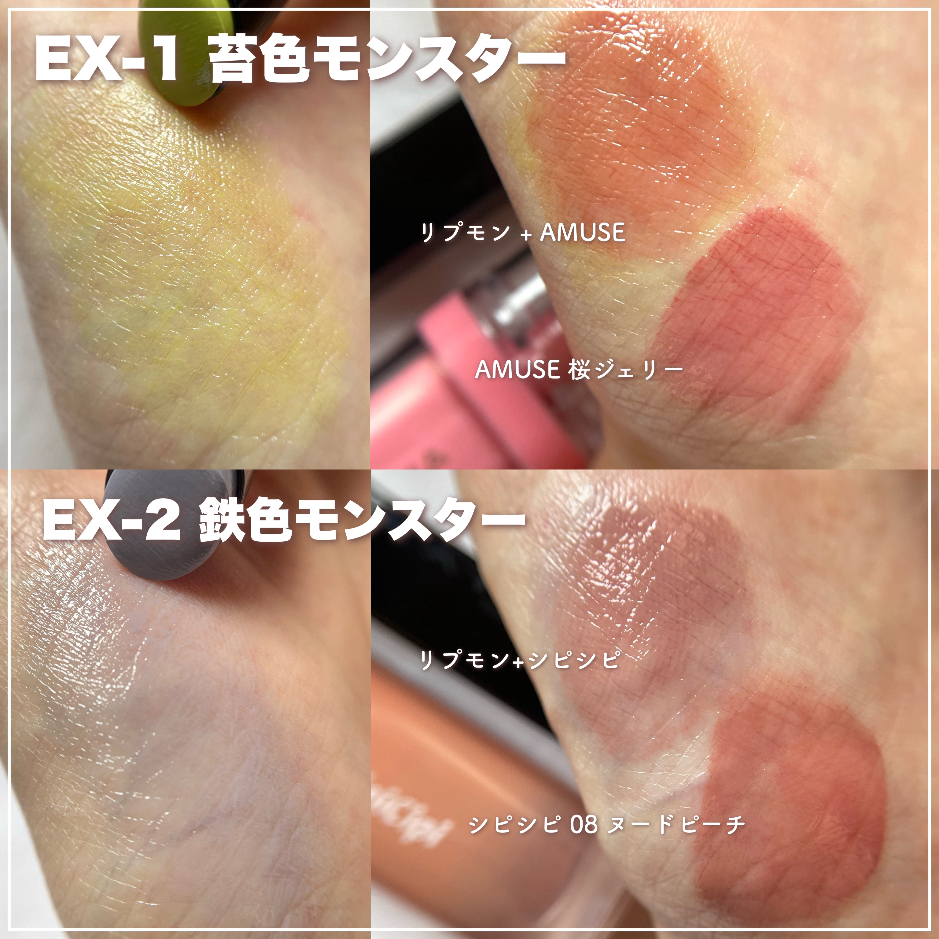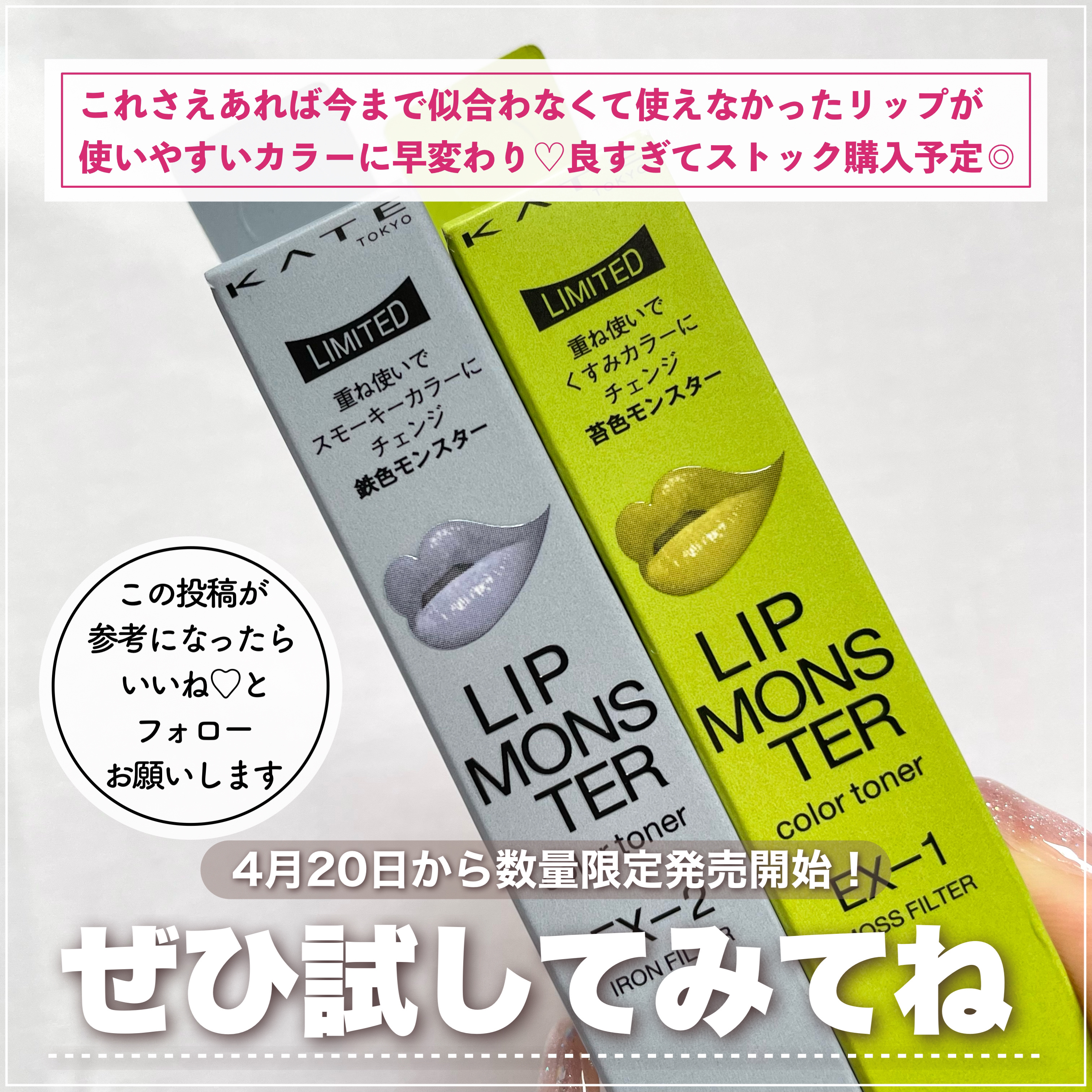 KATEリップモンスターカラートナーEX-2鉄色モンスター口紅の上から重ねて色変化長時間色持続する苔色モンスターと鉄色モンスター独自の色持ち技術で重ねるとモンスター化して落ちにくいリップ鉄色モンスターライトグレーのリップ上地でダークなスモーキ...