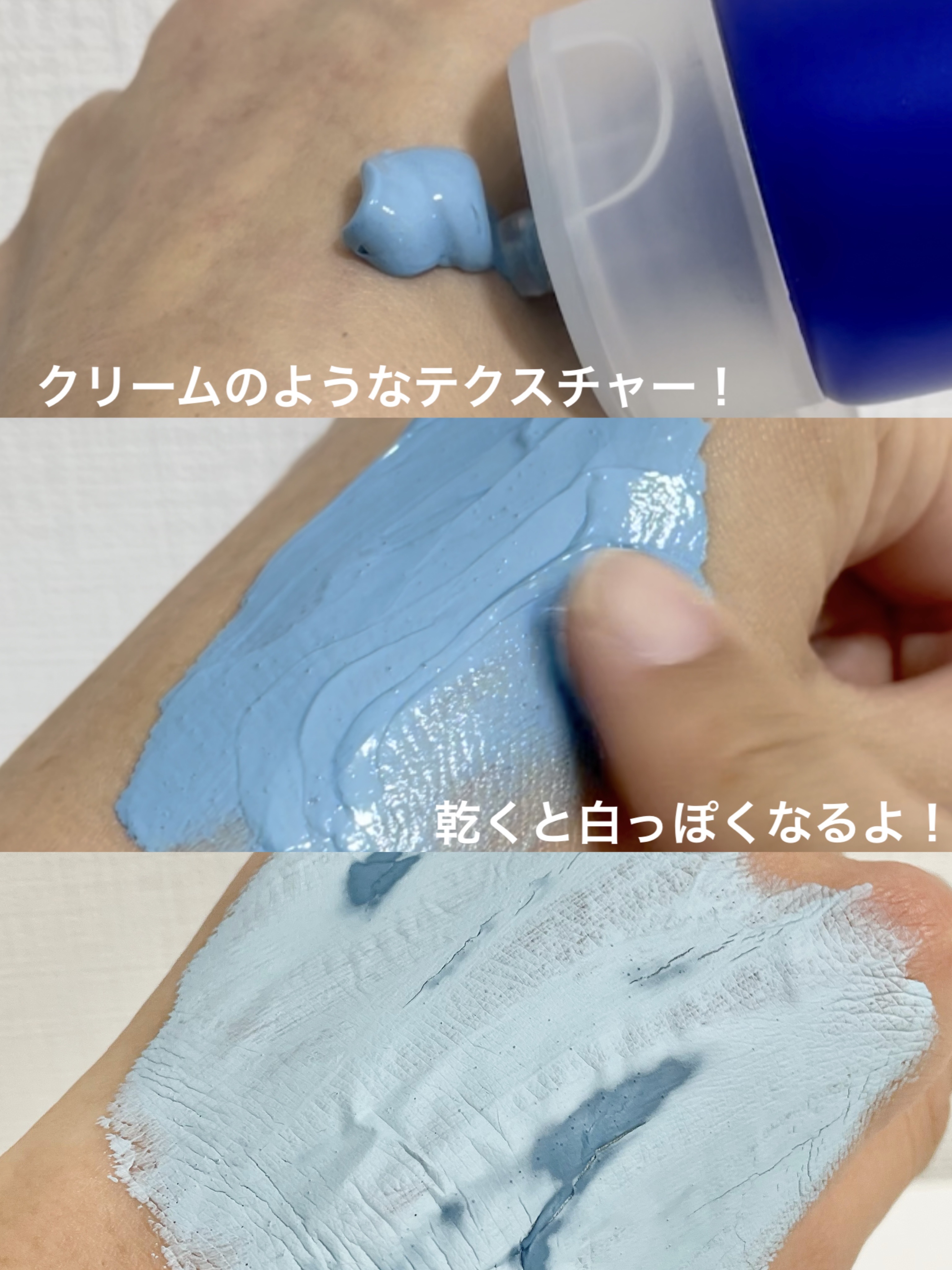 ブルーのクレイで3分毛穴ケア! 気になる黒ずみや角質が気になる方に!お肌に塗るパックで、さっぱり毛穴洗浄✨ 毛穴をケアする成分(AHA+BHA+PHA)で角質のターンオーバーをサポートしながら、毛穴の汚れと角栓をケアして綺麗な肌に導いてくれるのだそう。 洗い上がりは、さっぱり&スッキリ! 爽やかな香りもあいまって、爽快感いっぱい◎つるんとすべすべな肌触りで、顎のざらつきも気にならなくなる感じがうれしい○