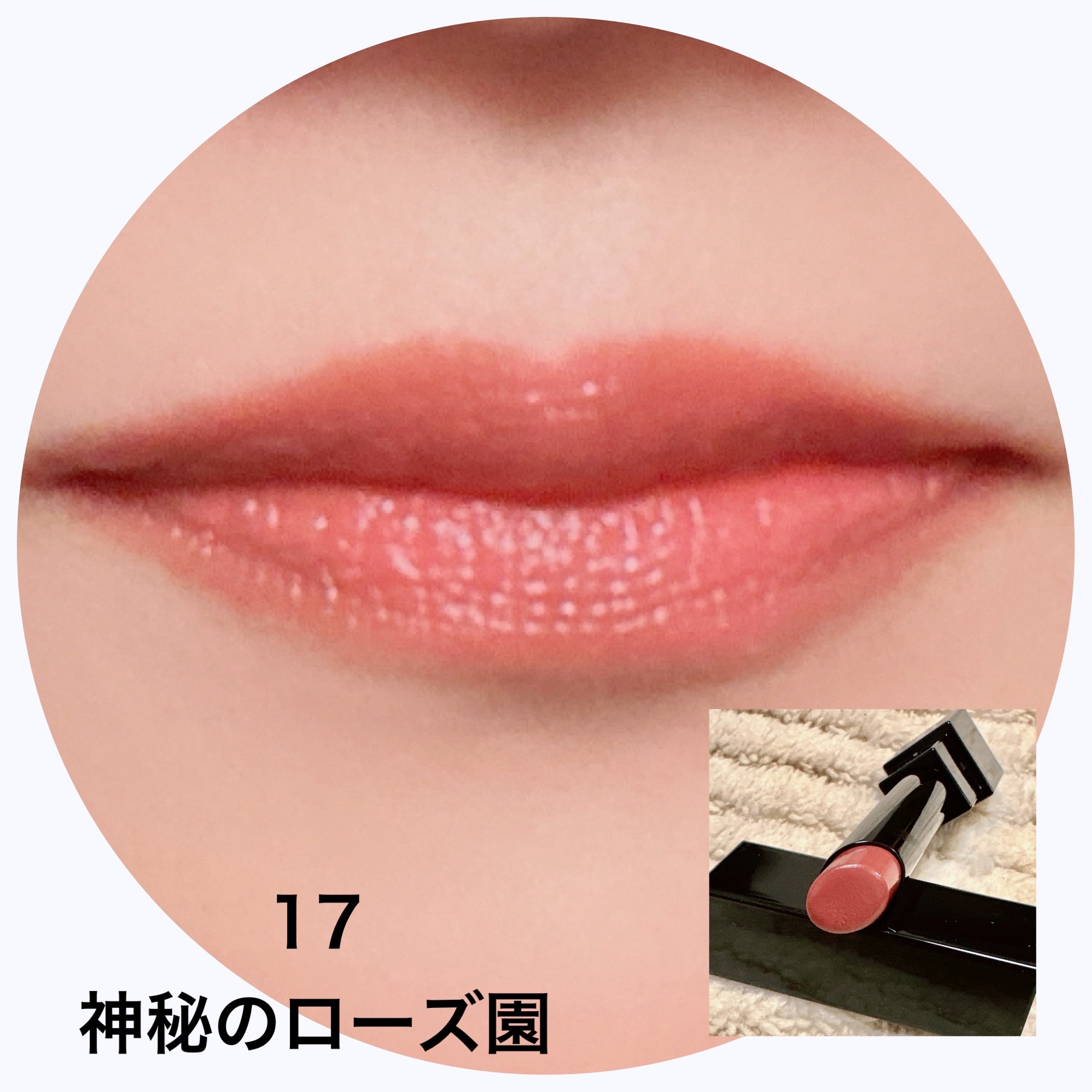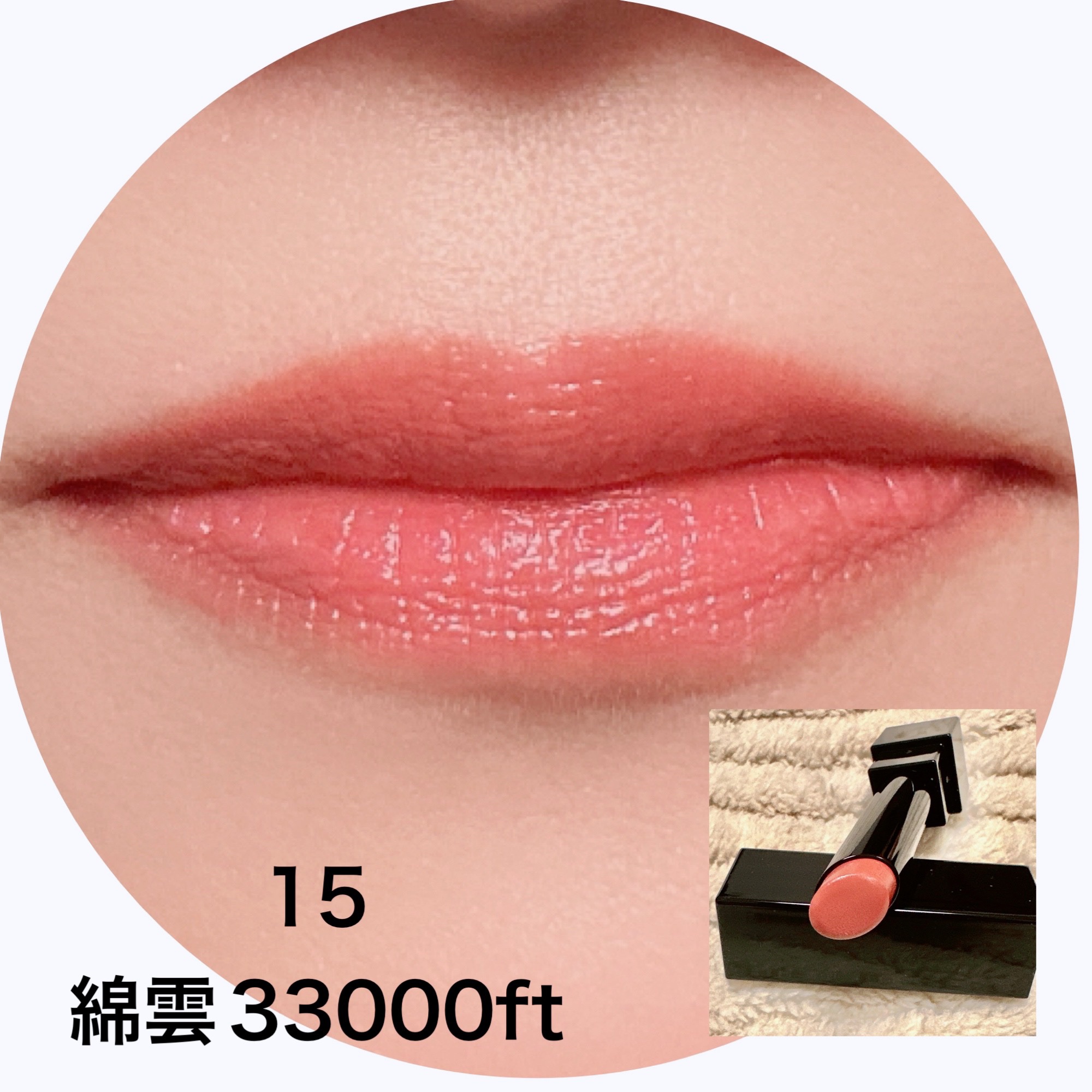 美発色で落ちにくいリップ♪ 唇から蒸発する水分を活用して、密着ジェル膜にすることで つけたての色が持続するんだそう! ▶15 綿雲33000ft 茜色の綿雲みたいなレッドブラウン。シアーな明るめカラーで上品な印象♡ ▶17 神秘のローズ園 バラのようなローズレッド。低めのトーンで華やかさと上品さのバランスが良い♪