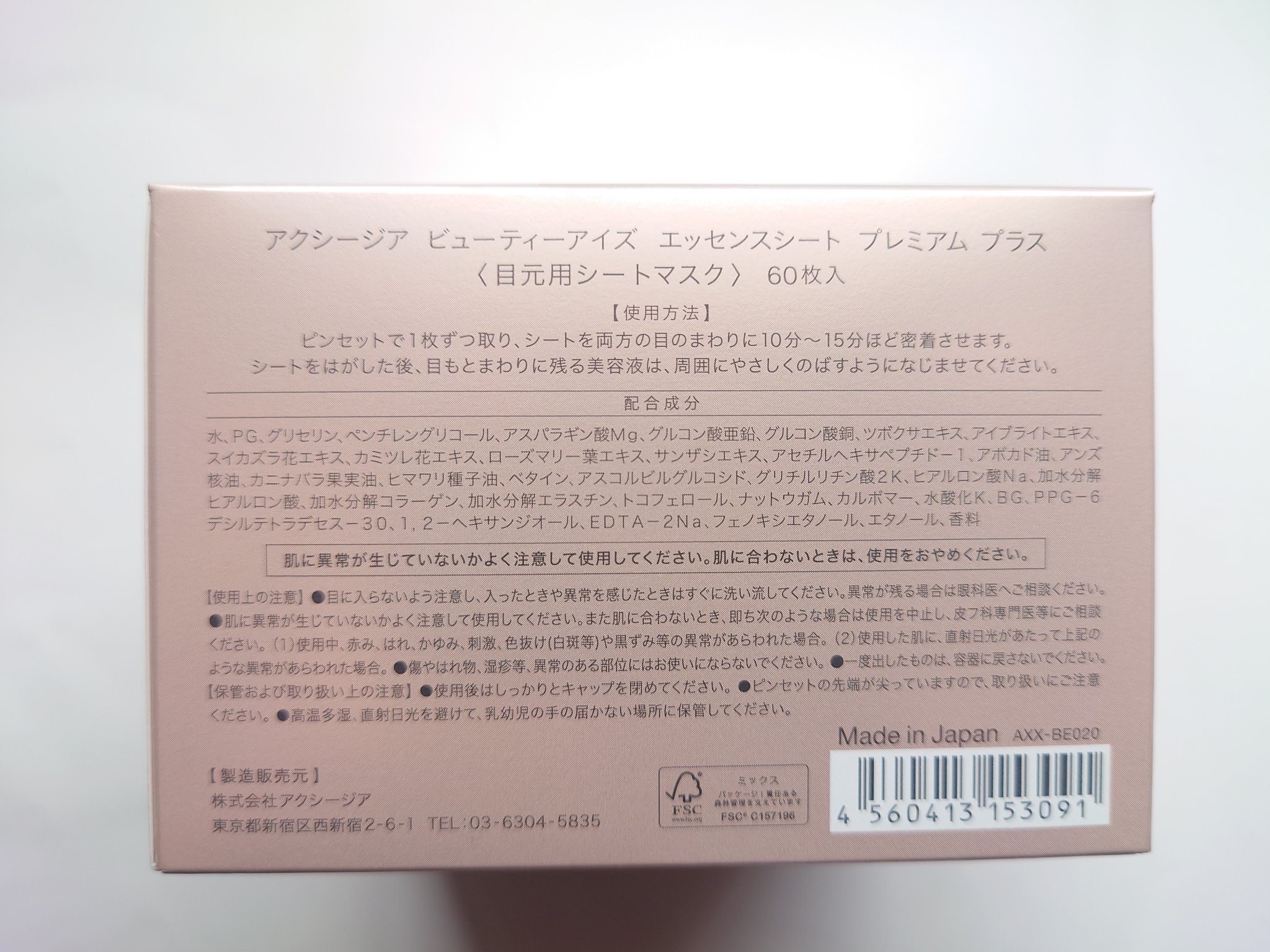 商品詳細情報AXXZIA ビューティーアイズ エッセンスシート プレミアム プラス