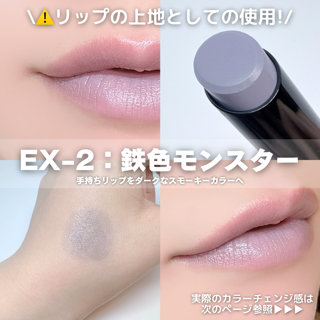 15:綿雲33000ft シアーな発色、控えめなピンクブラウンカラー 落ち着いた発色なので、オフィスメイクにも◎ お肌の色がパッと明るく見えるよ! 17:神秘のローズ園 青みを感じるローズレッドカラー これ、まじで好みすぎた。。。 個人的には07 ラスボス、12 誓いのルビー、 限定色だけど107 紅折り紙の願い だと 濃すぎて使えないって方におすすめしたい! EX-2:鉄色モンスター 手持ちリップをダークなスモーキーカラーへ カラーチェンジするために使うリプモン👾 これだけだと、ガチでちびまる子ちゃんの 藤木くんになっちゃうので注意⚠️