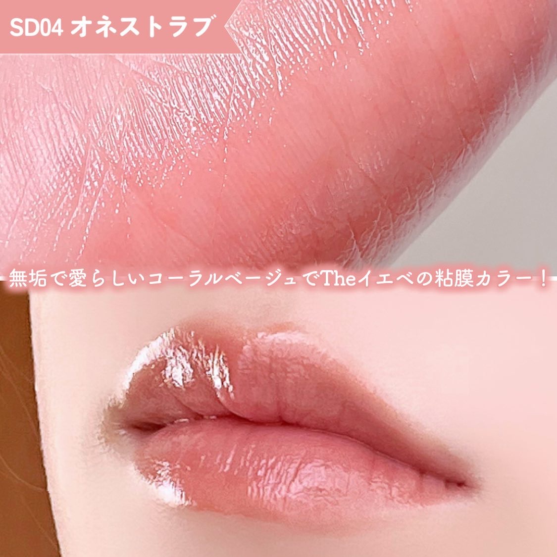 塗って時間が経つと唇の凹凸をなめらかにして密着し、ぷるんとしたボリューム感のある唇に♡♡ サラッとしたなめらかなテクスチャーで軽いつけ心地でベタつきもないため、塗っても不快感がなく使いやすいです😊 今回の新色は穏やかな春風のようにより一層柔らかくなった果実をイメージしたレイジーベージュカラー!!