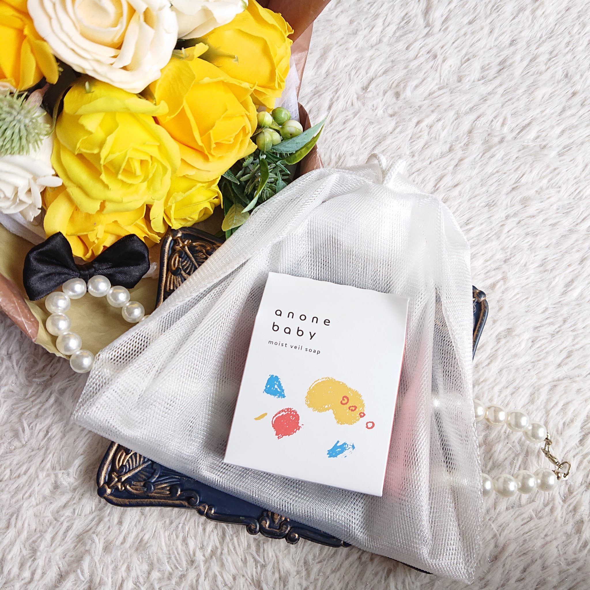 天然由来99%のベビー用石鹸。職人が1つ1つ時間をかけてつくるハンドメイド石鹸だからこそ、徹底した保湿力を実現。 まるで宝石のような琥珀色の石けんを、専用ネットに入れて泡立てます。合成香料はないので無添加石けんのやさしい香りだけします💗泡立ちかよくキメの細かい濃密でなめらかな肌触りの泡がたちます🫧洗い上がりはさっぱりしつつしっとりとしています。 なめらかな泡なので赤ちゃんでも肌への刺激が少なく使うことができそうです!泡立てネットも大きめで石けんを入れて泡立て&収納できるのもポイント◎ 生まれてすぐの新生児から使えて、顔から髪まで全身を洗うことができる!赤ちゃん用の日焼け止めもこすらずに落とすことができるそうです😊✨✨ もちろん大人の方でも安心してお使いいただけます!低刺激で無添加なので、敏感肌の方や、小さな子供と触れ合うママのデイリーケアにもおすすめのソープ🫧