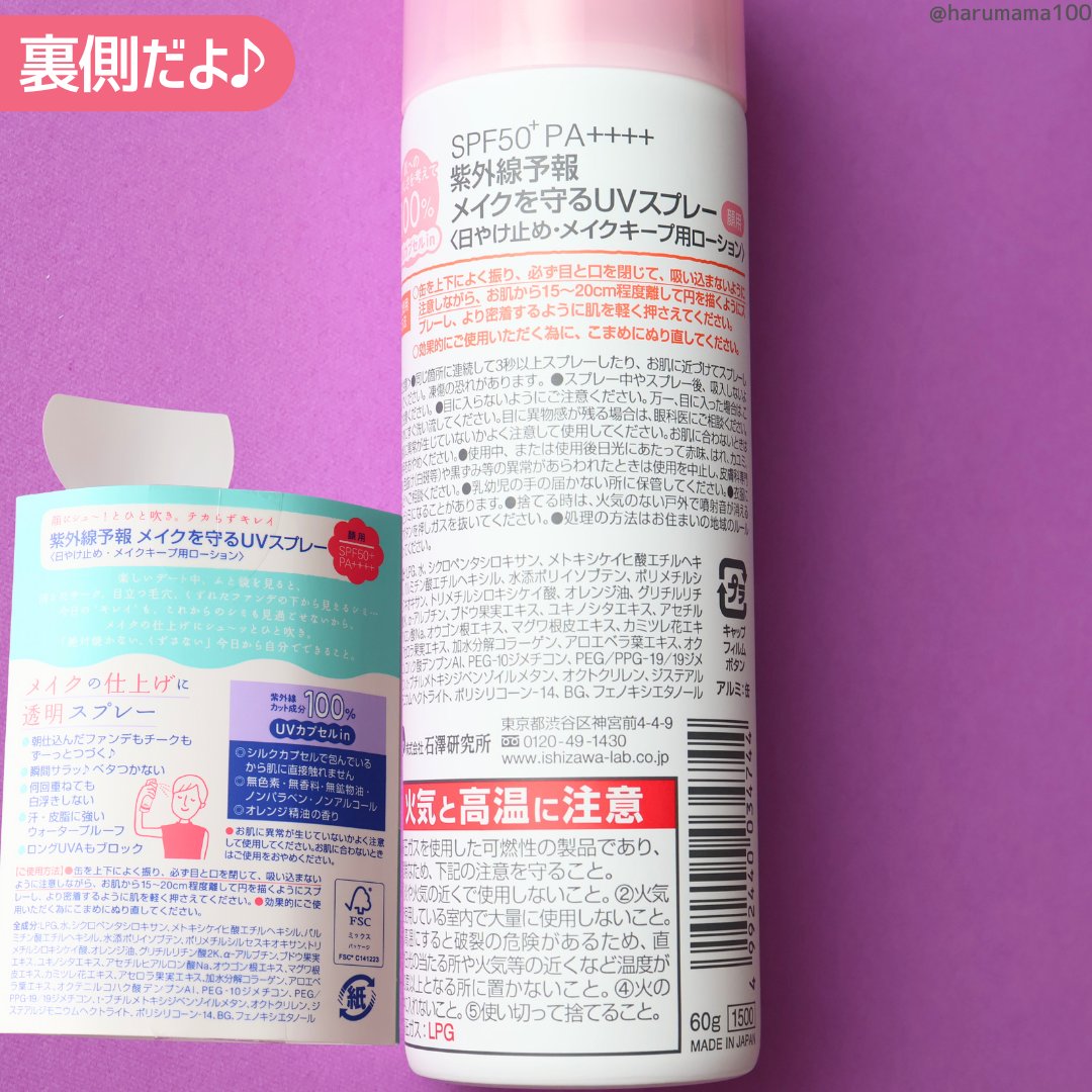 紫外線予報 紫外線予報 メイクを守るUVスプレーM | 1,650円 |