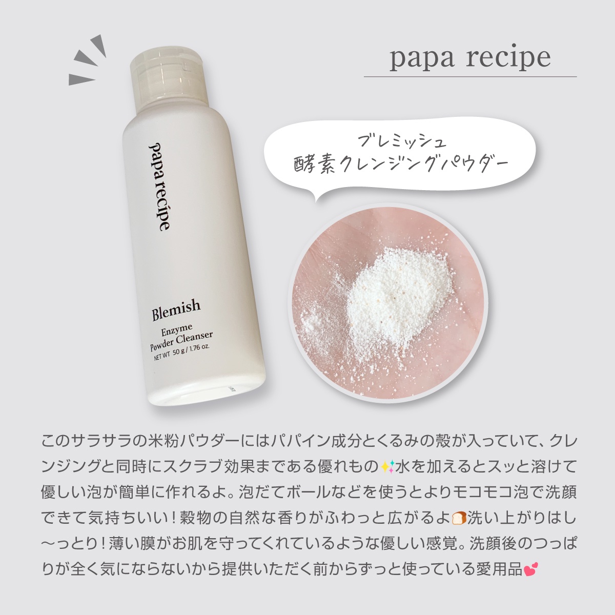 パパレシピブレミッシュ酵素洗顔パウダー50g米粉と植物由来の酵素で、やさしく角質ケアお肌に負担をかけず、なめらかで透明感のある肌へ導いてくれるそう🫶低刺激処方で、敏感肌の方も使いやすいデイリー使い可能な酵素洗顔です🫧粒感がしっかりある穀物系の...