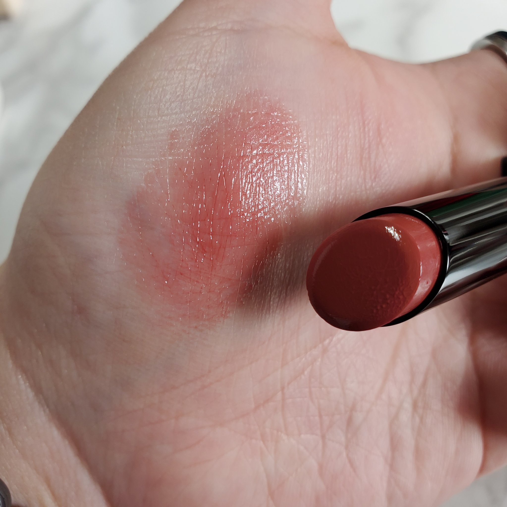 密着ジェル膜に変化するテクスチャーで色もちを楽しめるリプモン♪ 「15 綿雲33000ft」は落ち着いたレッドブラウンで、茜色の綿雲をイメージしているんだそう☁️ 透け感のある明るめカラーで、唇に乗せると温かみのある雰囲気になったよ♡