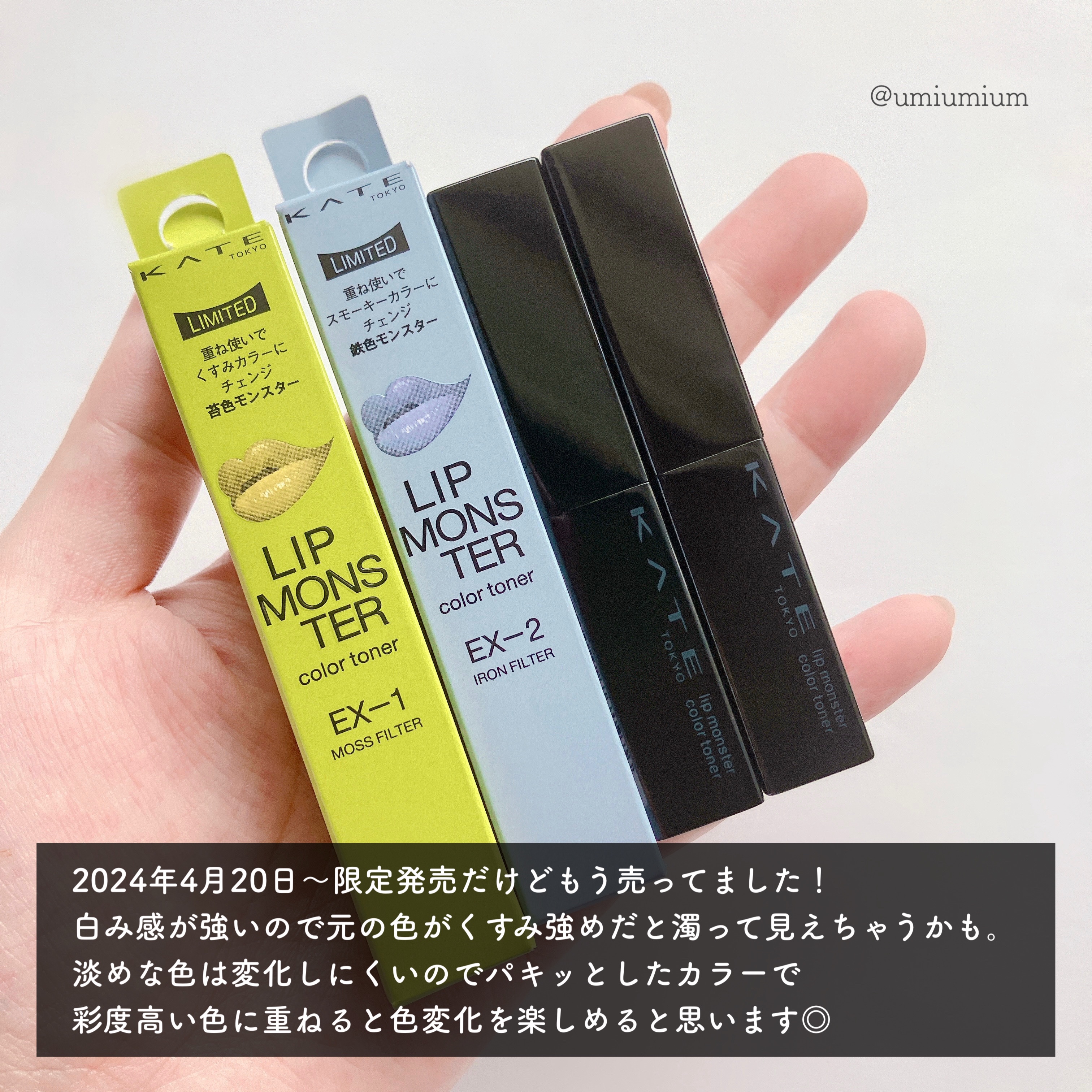 KATE限定2色#リップモンスターカラートナーEX-4ミルクラテモンスターEX-5ブルーパールモンスター重ねて色・質感チェンジを楽しむリプモンのカラートナー✨EX-4は白っぽヌーディーカラーに色変化!EX-5はブルーパール入りリッ...