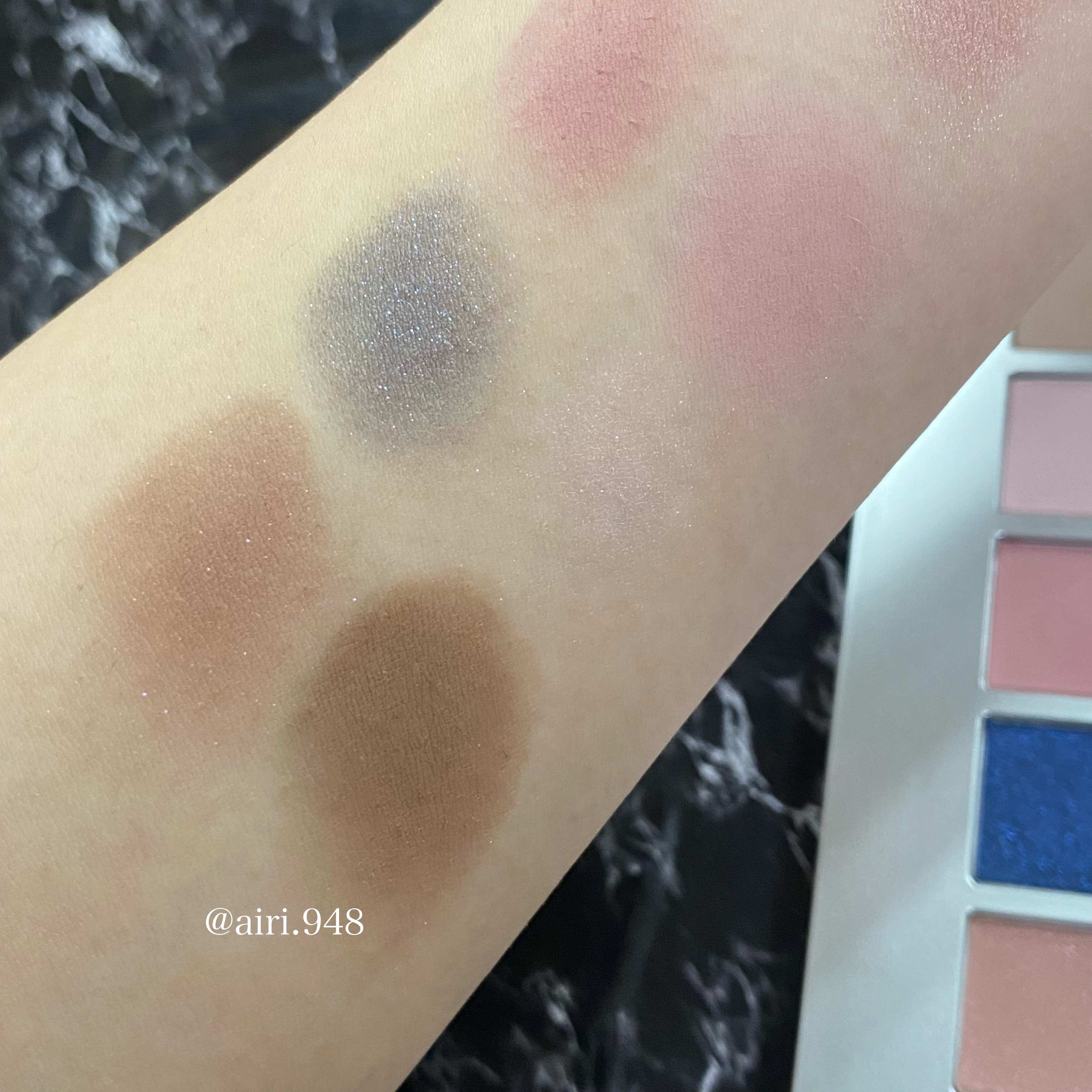 様々な色や質感を重ねて楽しむ昼夜の花見パレット🌸 夜空を反映したモーヴピンク色の花びらとほのかに反射して光る川辺のディープネイビーの輝きがそのまま投影された夜桜を嗜むように雅なアイパレット🌌 トーンの異なるマットのピンクシャドウで陰影を作ることもできるし、ブラウンだけを使ってスモーキーなメイクもできる🧸 カルミンアレルギーの私だけど、この10イン・フローはヴィーガン仕様なので安心して使えました☺︎