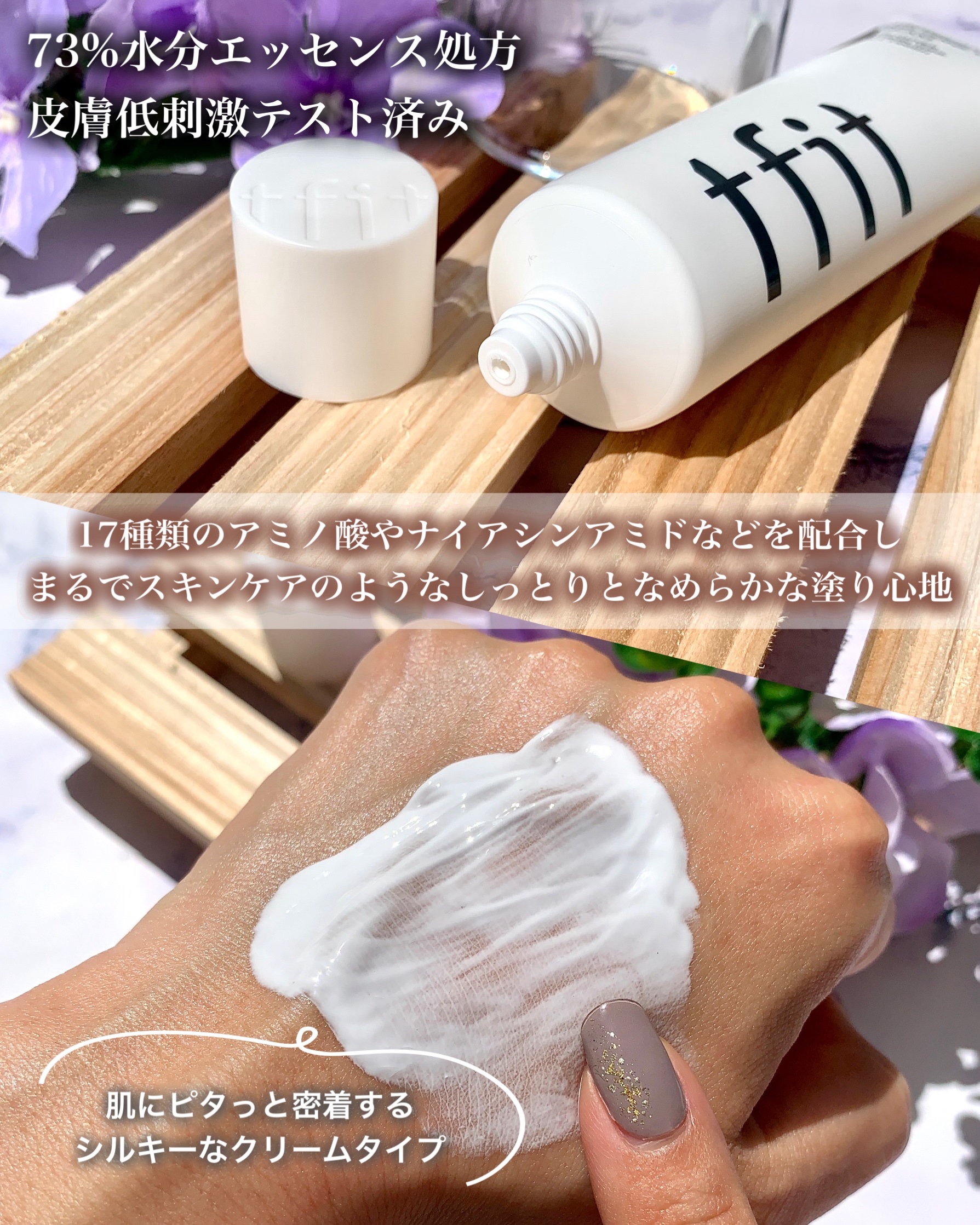 | みずみずしくて軽めのテクスチャー 肌にスッとなじんで密着感◎ ベタつかないのに、しっとり感も◎ | 詳細を見る | ||