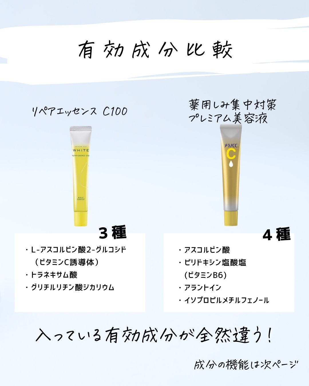 特定の有効成分を試してみたい。美容成分を試したい。そんな時は代用してもいいけど、それって似てるのかな?って思うときが正直ある。 同じ成分があっても実は濃度が違ったり、処方技術が違ったり。技術が違うと使用感も剤型も変わることがあることは知ったうえで使うといいかも。 せっかくプチプラ化粧品を買うならそれはそれで楽しんでほしいから是非念頭にいれてほしいな!!