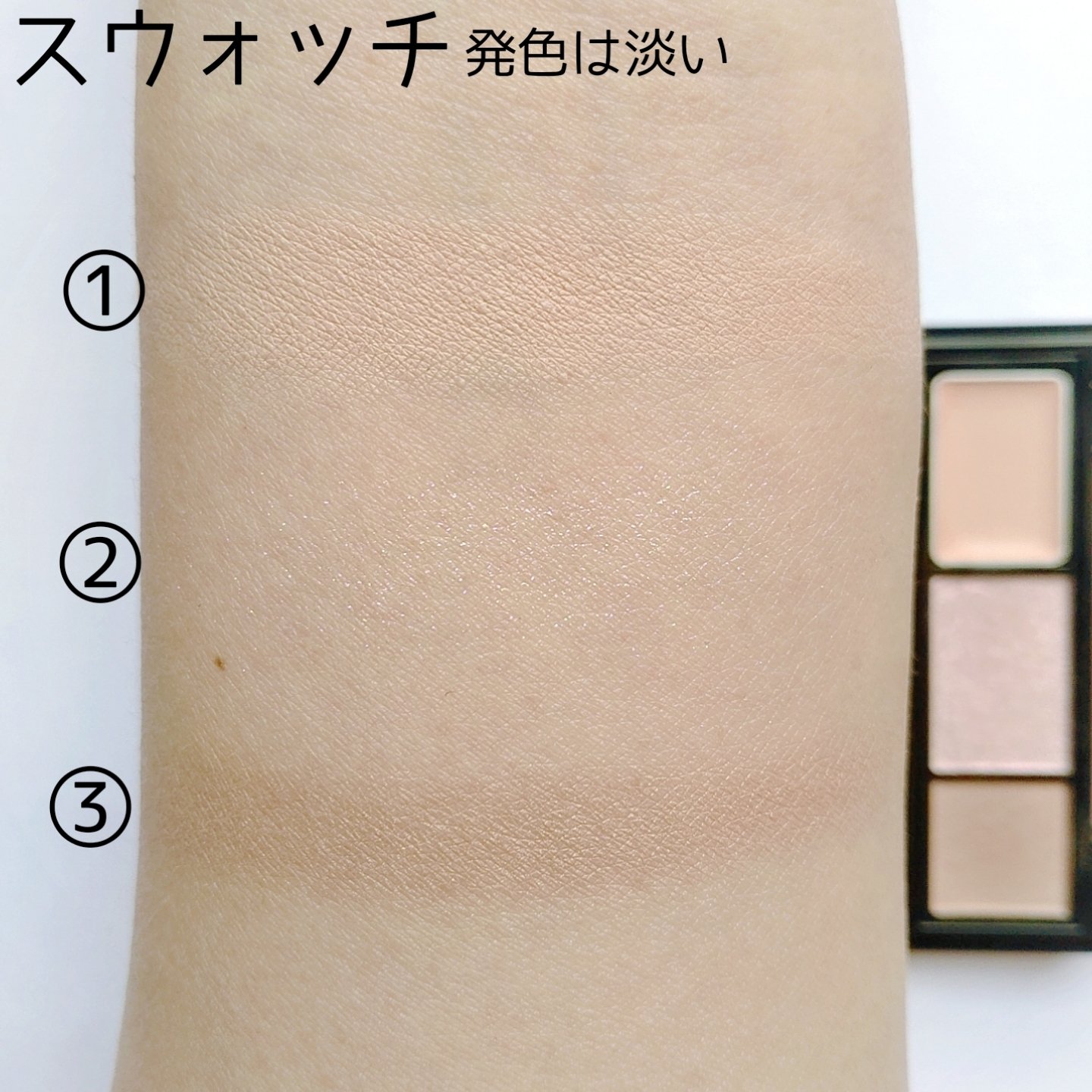 プチプラのクオリティじゃないっ!! 発売前からチェックしていたけれど、ここまで可愛いとは…😆 絶妙カラーで目もとのくすみを飛ばして*明るい印象に🩷 横割りグラデーションでメイクし、立体感をより出したかったので最後に1番左のカラーを上まぶたの真ん中と涙袋にのせています🙆 肌馴染みも良くて粉飛びも感じにくかったです💕 ブラウンの方も店頭に出てたら買おうかな💓
