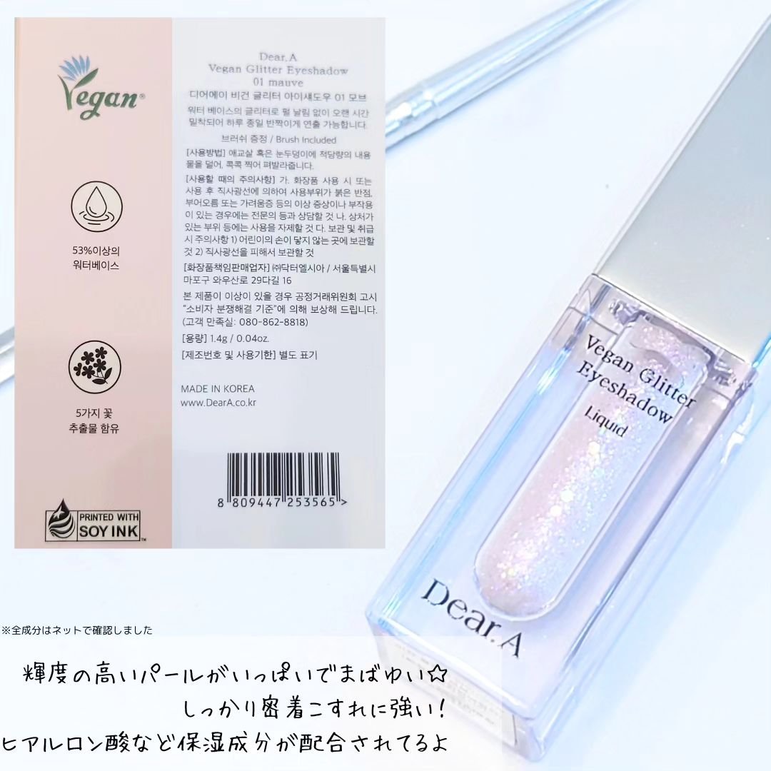 話題の韓国コスメ!✨️ ディアエーのティントとグリッター🩷 04のリトルモーブはミルキーなモープカラー&ピンクベージュカラーでブルベさんに使いやすいカラーだったよ🩵✨