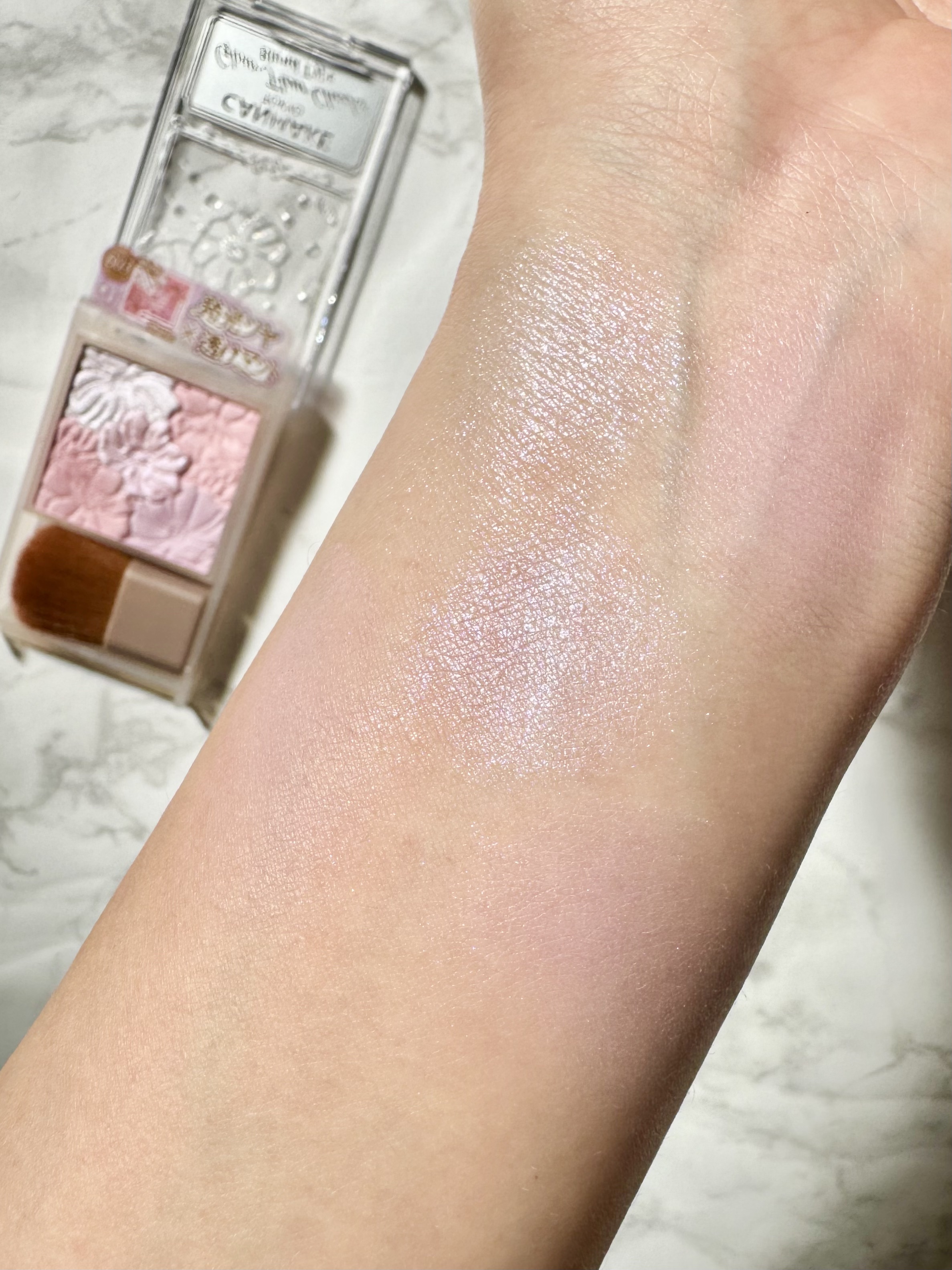 上品なローズカラーのチーク&ハイライトです♡ 透け感のある柔らかい発色で、右下の色も意外とふんわり色づきます ナチュラルな仕上がりのツヤチーク探してる方におすすめです👍🏻