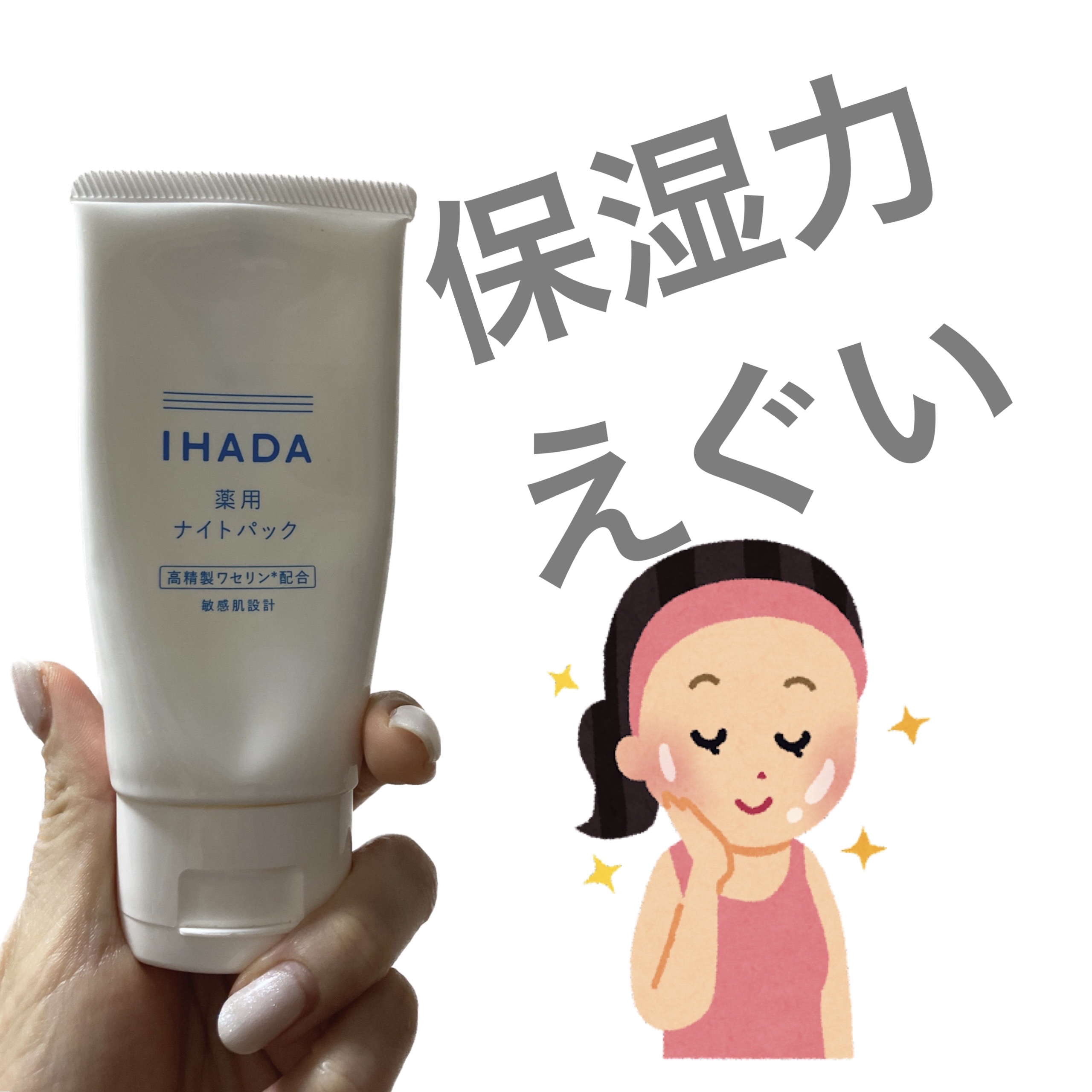 乾燥肌さんの保湿ケアや、冬の乾燥対策としておすすめのIHADA薬用ナイトパック¥1,980 スキンケアの最後に塗って寝るだけ😪😴💤 朝流す必要もありません◎ 塗ったあとのベタつきが少なく、普通のクリームや乳液と同じくらいのペタペタ感です❤︎