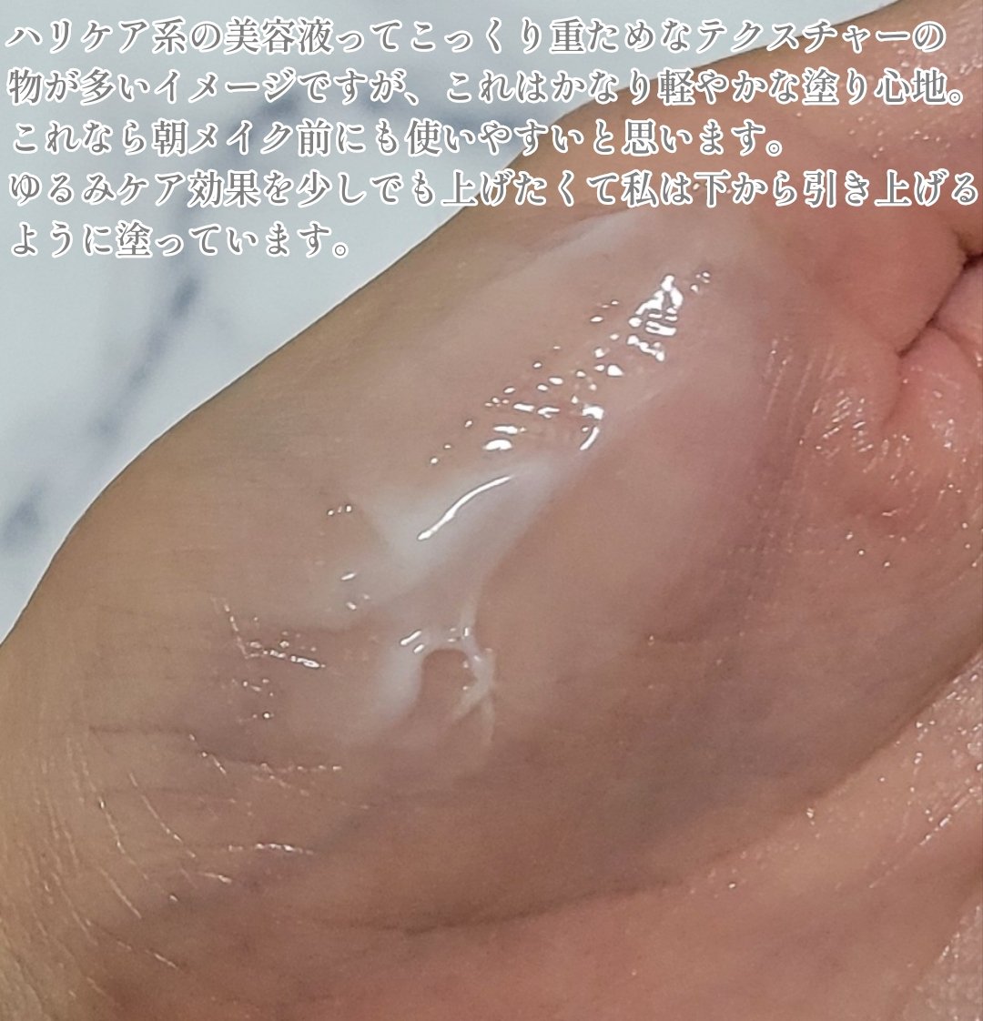 | とろーっとした濃密なジェルのようなテクスチャーの美容液。みずみずしさもあってスルスル塗り広げられる。 | 詳細を見る | |