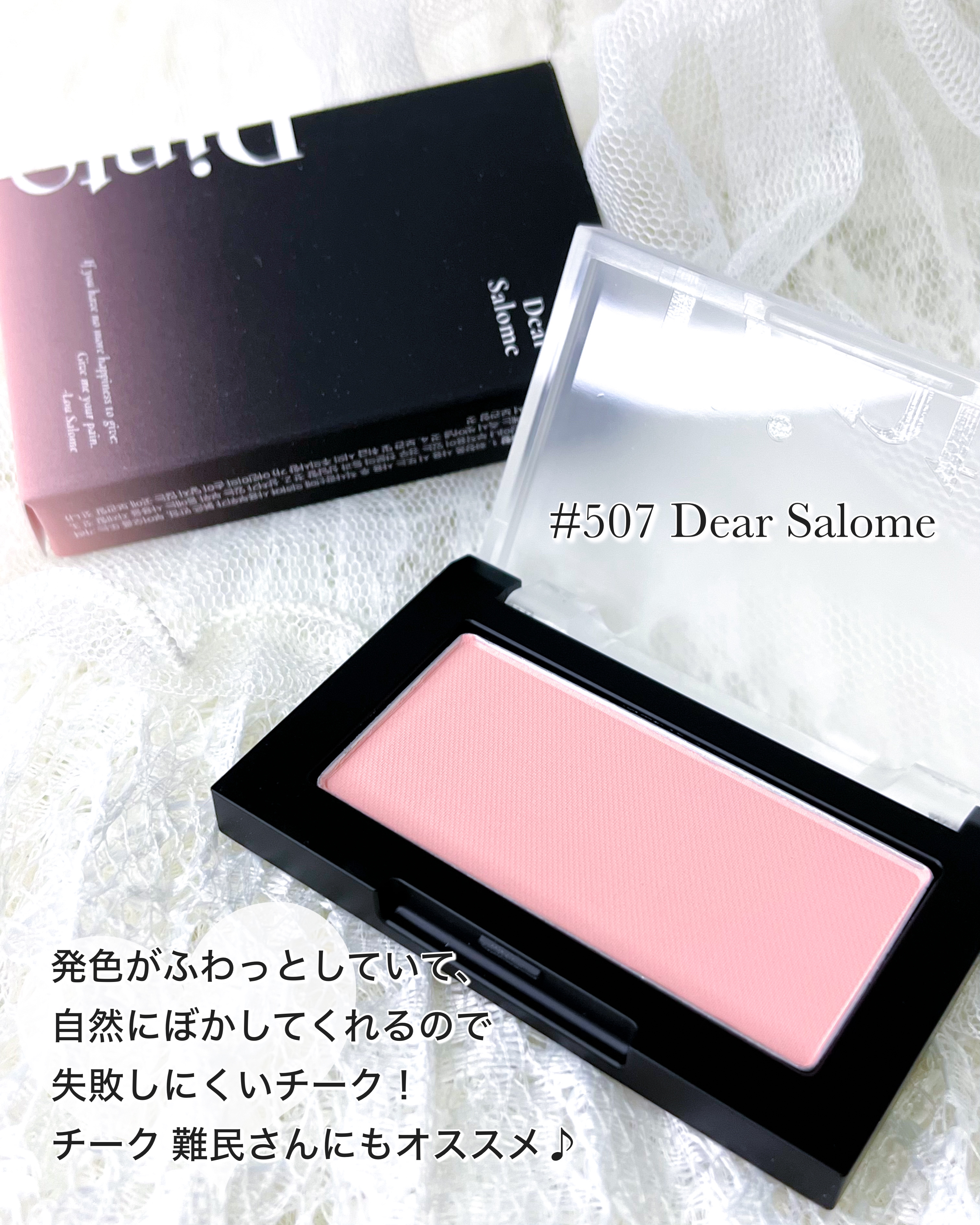 - フィニッシュパウダー乗せたようなふんわりしたと可憐な色合い ディントのチークは肌を軽く染めながら、ブラー効果で肌質をなめらかに演出します。 赤ちゃんのようにふわふわした肌表現ときれいな血色です。