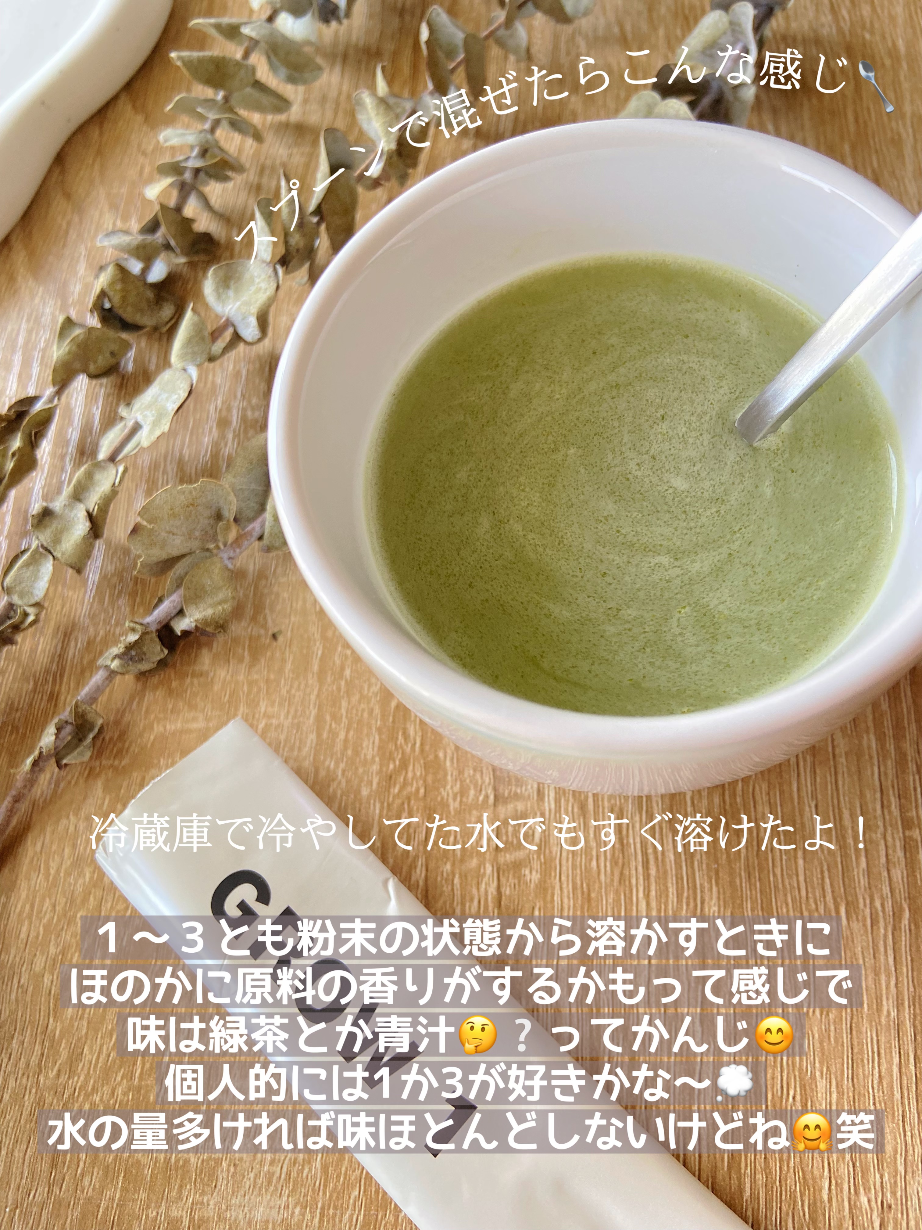 野菜・果物・穀物・海藻など50種以上の食品由来の原料を配合したマルチファイバーミックス 多様性の高い腸内環境を作る事が目標❤️ 1日平均的な食物繊維不足分約5gを気軽に摂取👍 味は飲みやすい緑茶フレーバー。 サッと溶けるから色々な飲み物に混ぜて飲めるよ💕 抹茶フレーバーだからコーヒーに混ぜたら合うかな?と思ったけど全く問題なかった😊