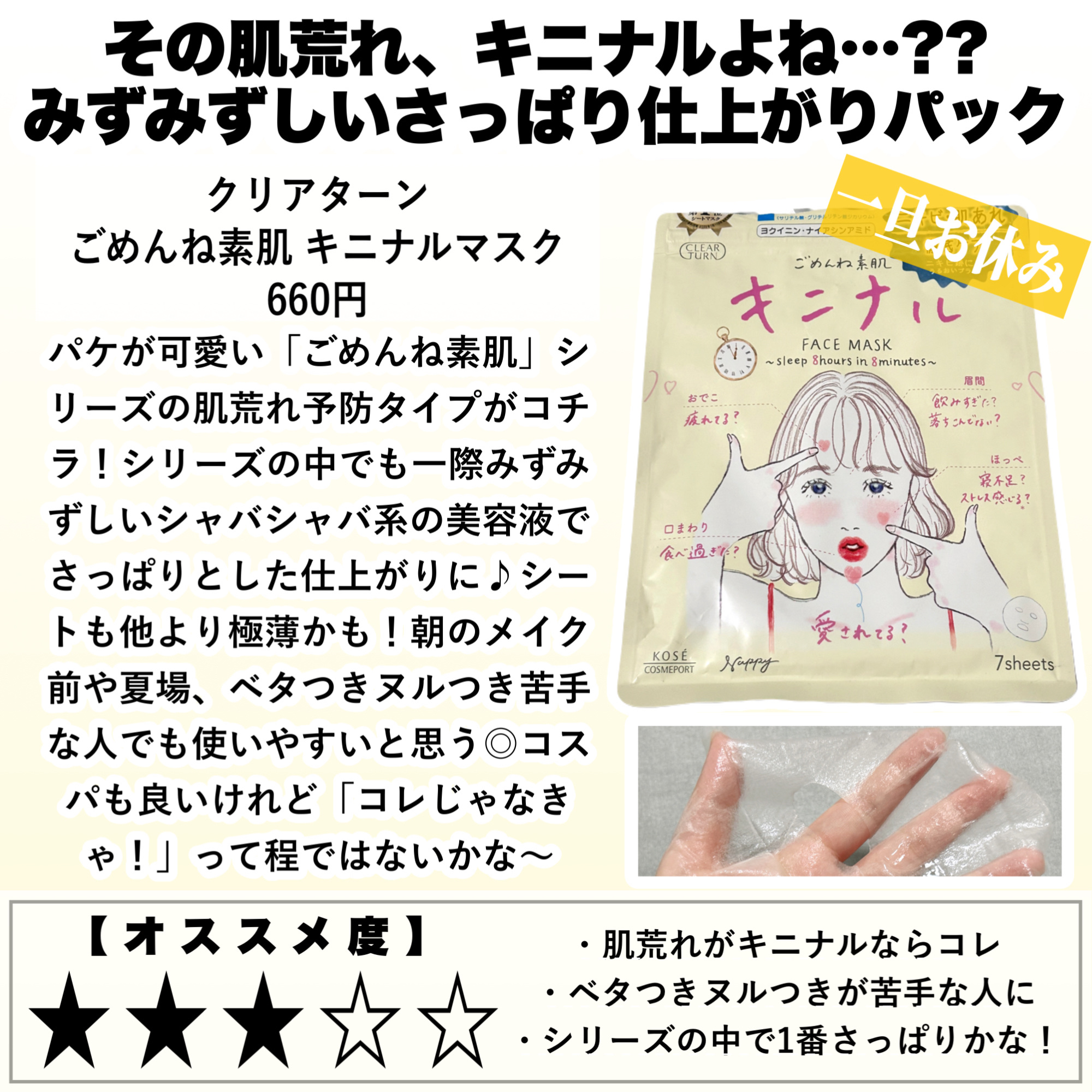 | スキンケアランキング第65位 | 薄めのとぅるとぅるシートがぴたっーと肌に 密着して気持ちいい♡ | 詳細を見る | |