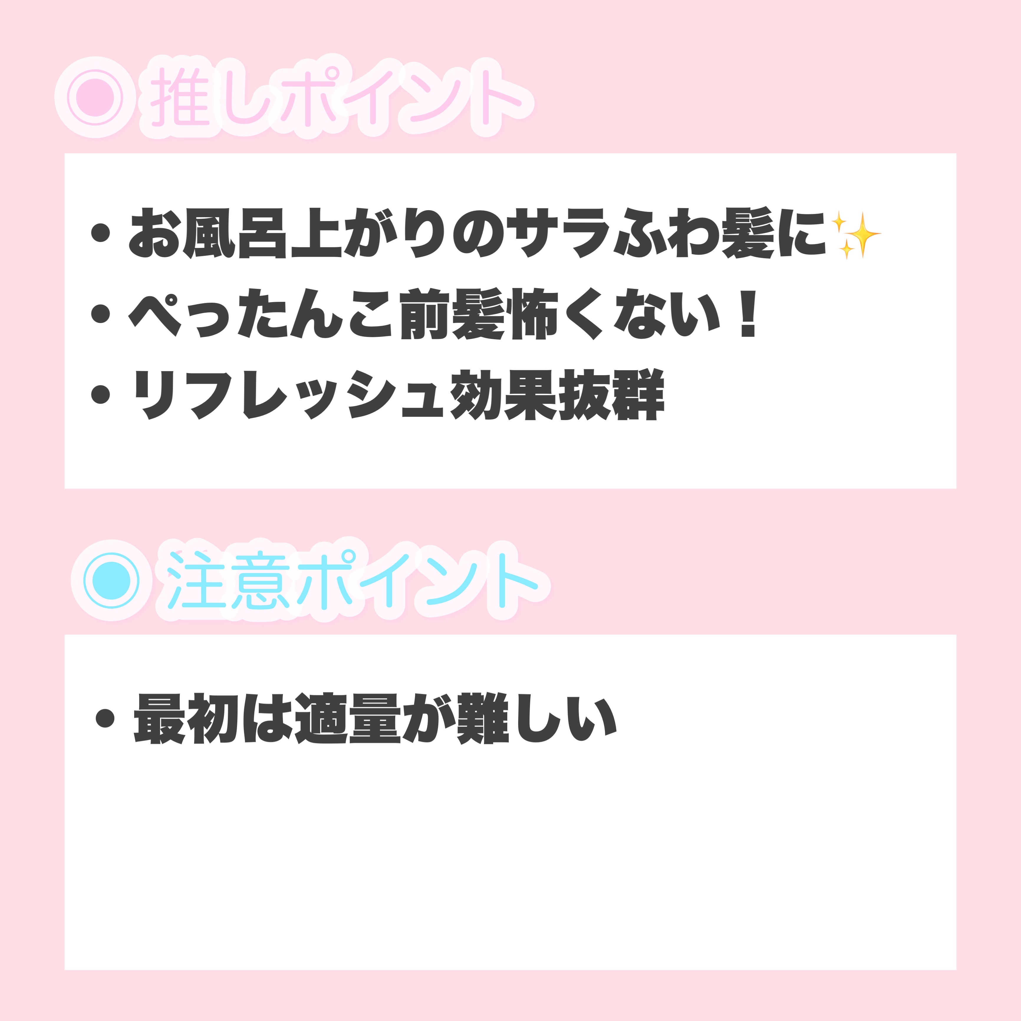 | ヘアケア・スタイリングランキング第146位 | 粉っぽさがなくて白浮きしないので使いやすい シャンプー後のようにスッキリした爽快感があります! 髪もふわふわ感が復活するのでベタつきもリセットできました | 詳細を見る | |