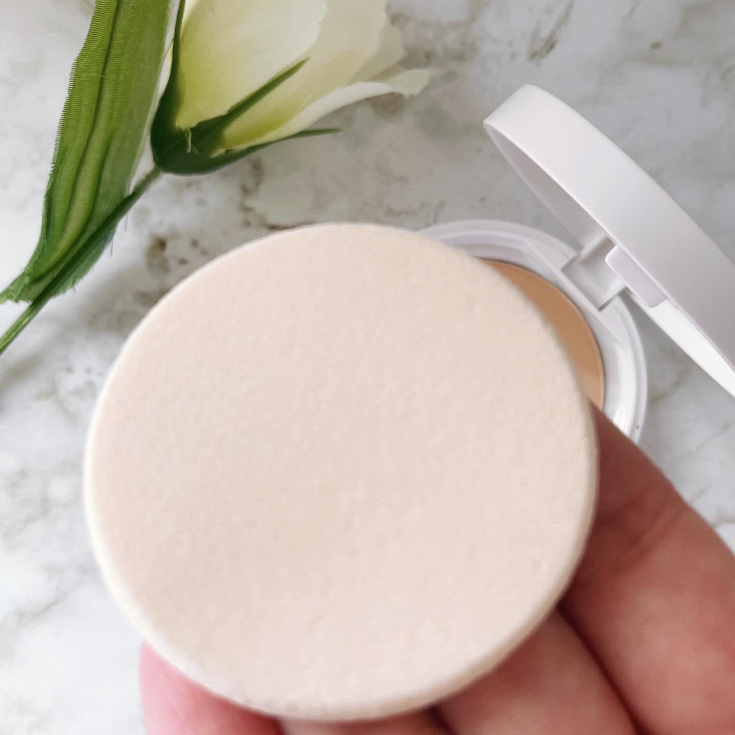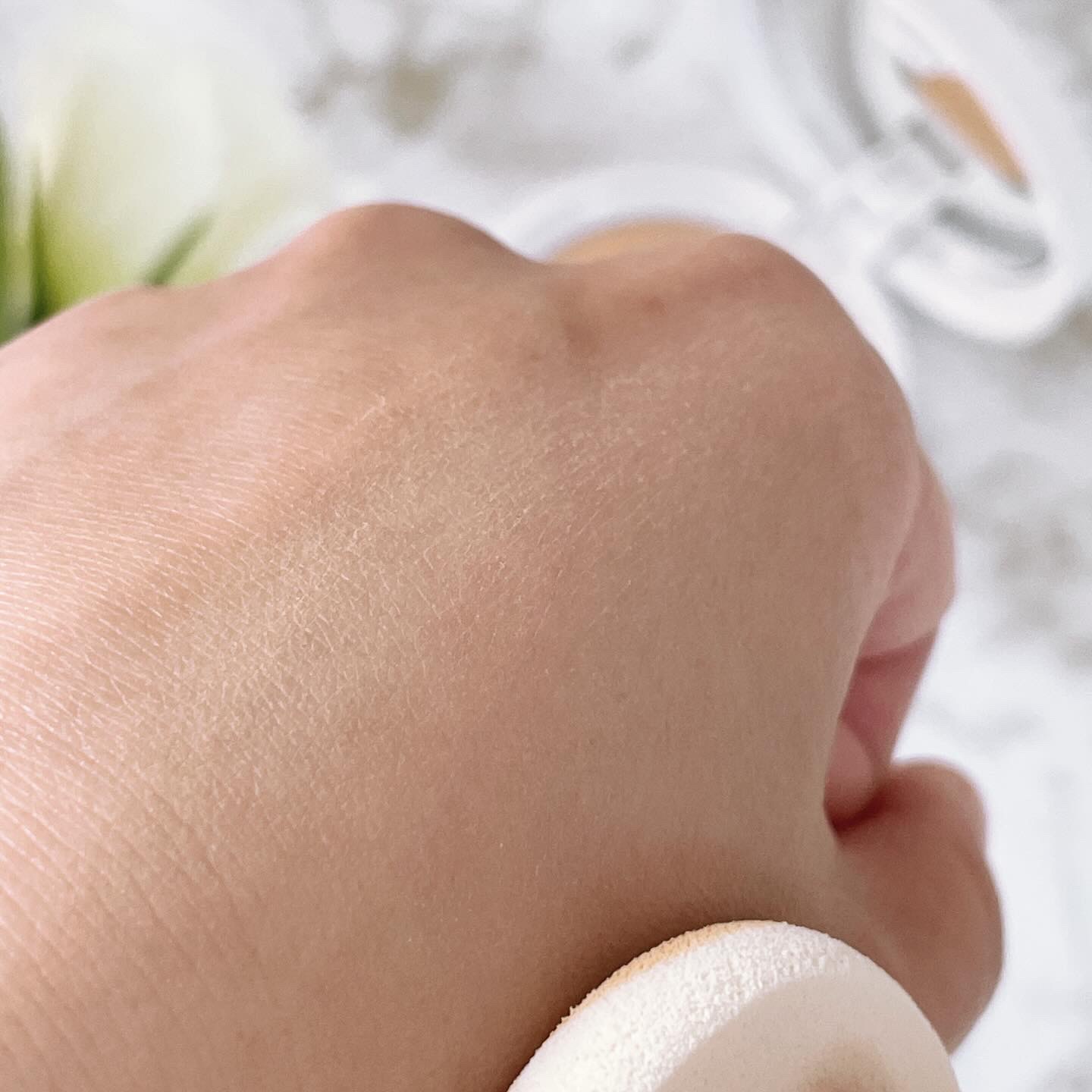 ふわふわしてて高級感がありますねっ(*'▽') 薄めの、持ちやすいスポンジです。 ファンデーションを選ぶときは比較的白いほうを選びますが これは塗ってて、( ゚Д゚)<結構、白い! よく伸びるしカバー力もなかなかです。 ちょっとの量で軽くポンポンとつけて肌になじませるだけで十分なんだもん。 紫外線防止効果もSPF50+・PA+++と、最高値だしカラバリが7色あるので自分に合った色が選びやすいのもいいのではと思います!