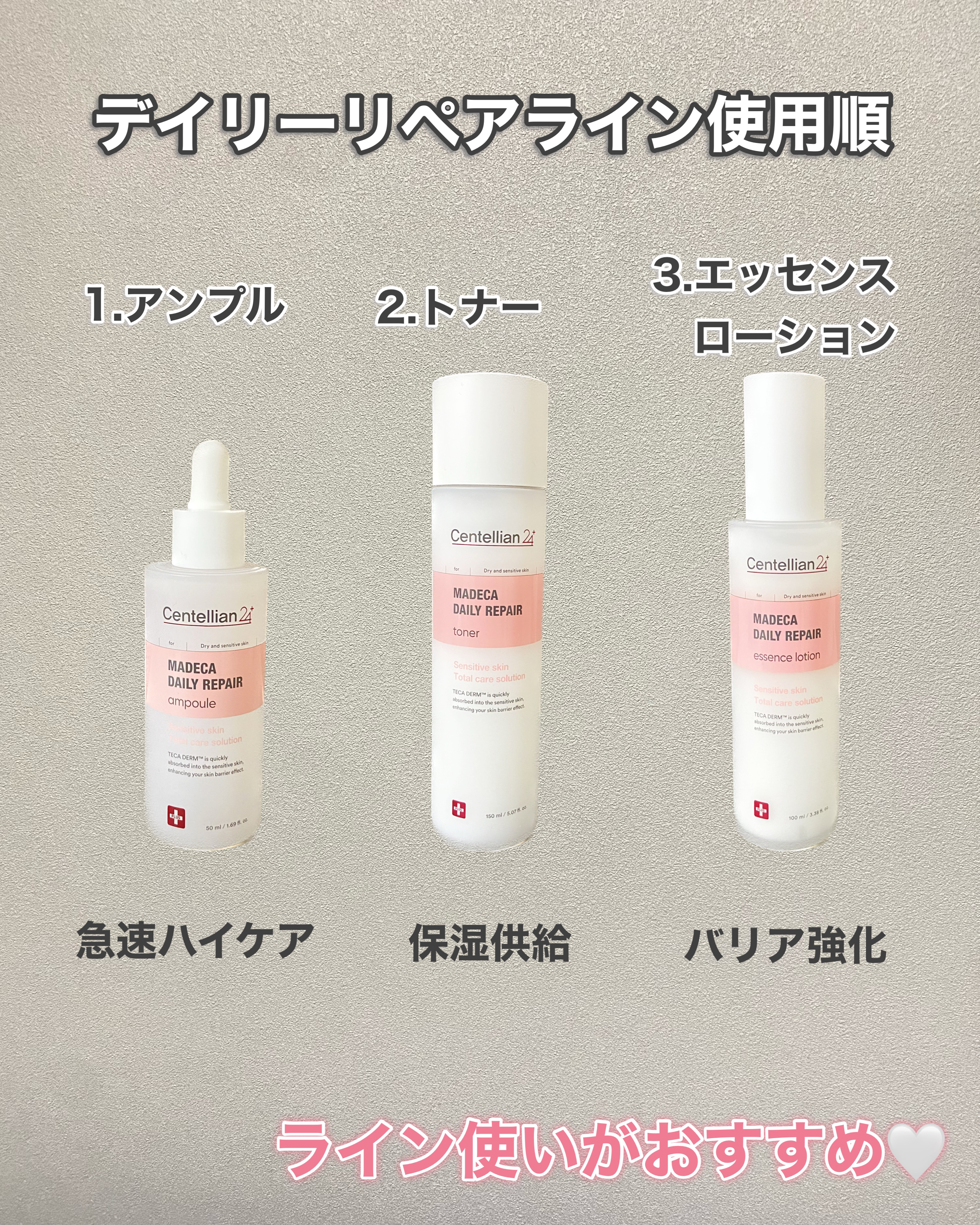 乾燥and外的刺激を感じるお肌におすすめな、マデカデイリーリペアシリーズをご紹介いたします🌿✨ 塗った後のお肌のしっとり感と肌の鎮静は申し分なし!😉✨さすがセンテリアン👍 季節の変わり目にマストバイです🫵🫵🫵🫵